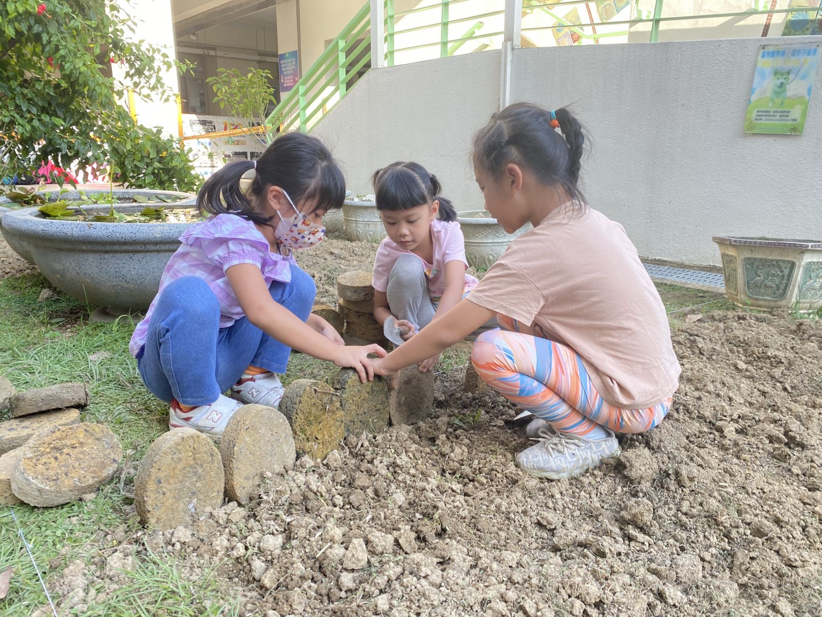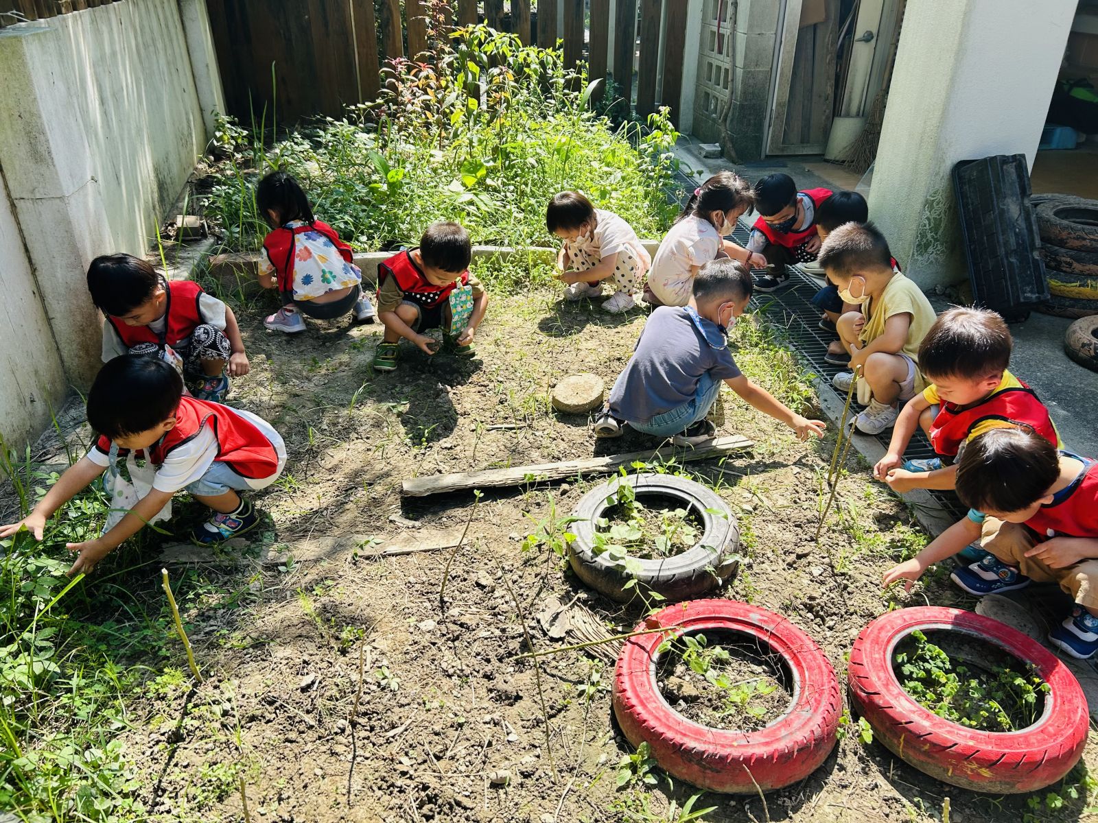 .大家分工合作一起完成蝴蝶園的基礎設施建設、邀請家長協助鬆土工作。