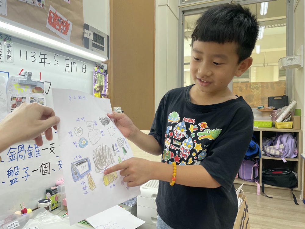 .孩子們將問題畫下來請教專家,並以圖像方式記錄下來,實際依照專家的方法操作。