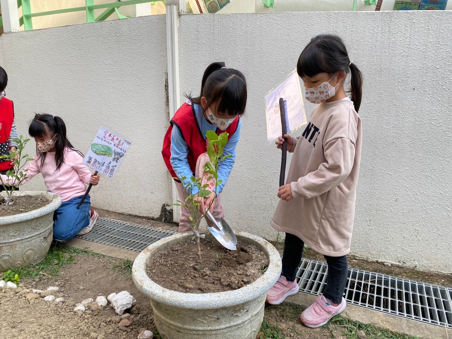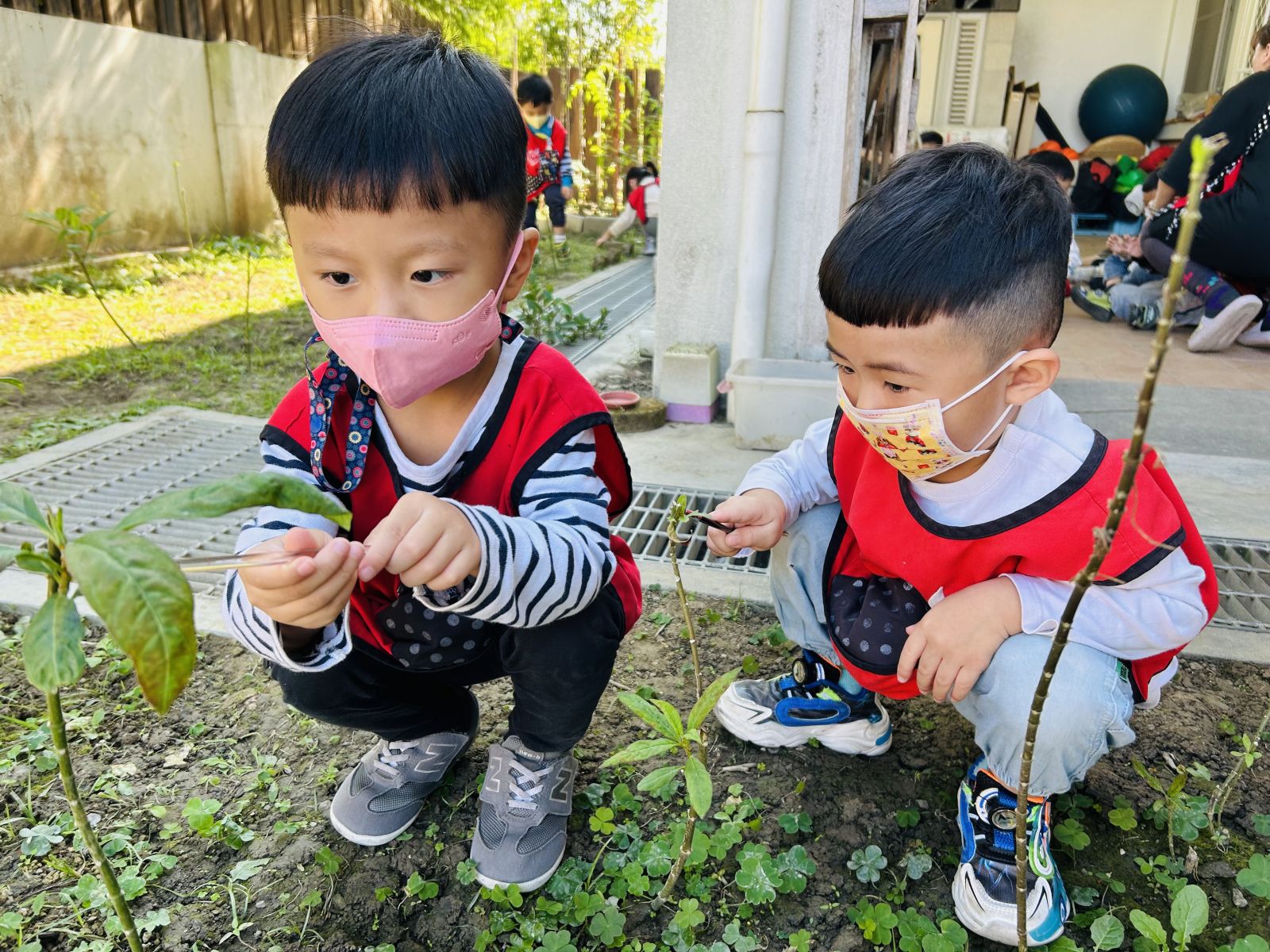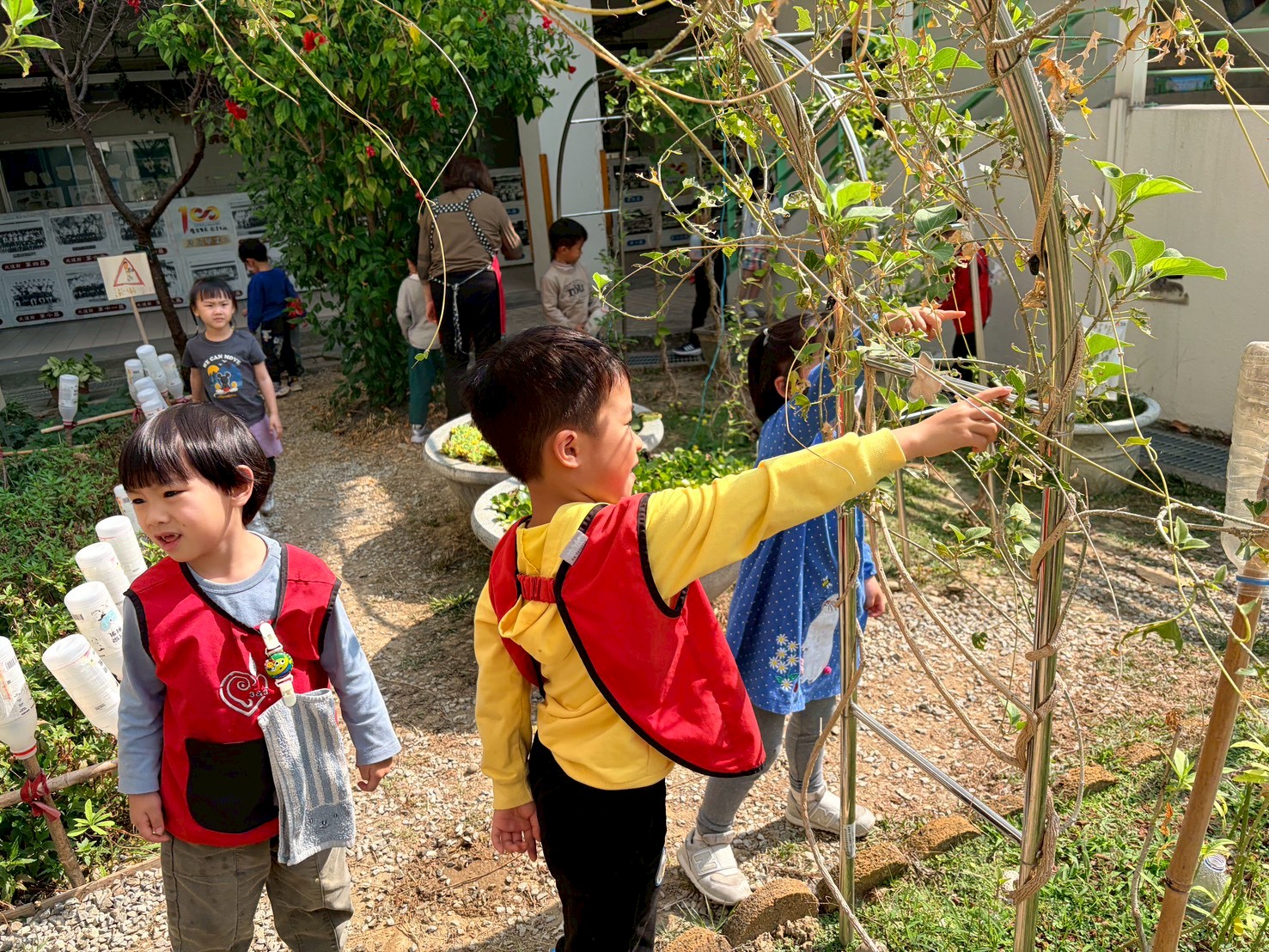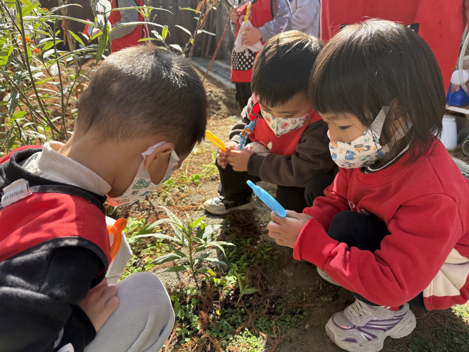 了解了食草與蜜源植物後,幼兒們對於照顧昆蟲們既期待又害怕。