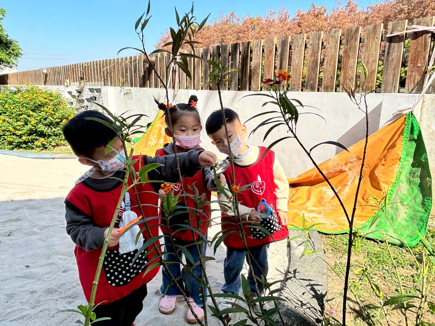 .在花園的觀察活動中,孩子們帶著好奇心去探索毛毛蟲的食草世界。他們逐漸發現,不同的毛毛蟲只會選擇特定的植物來進食,這樣的現象讓孩子們引發更多的討論與思考。