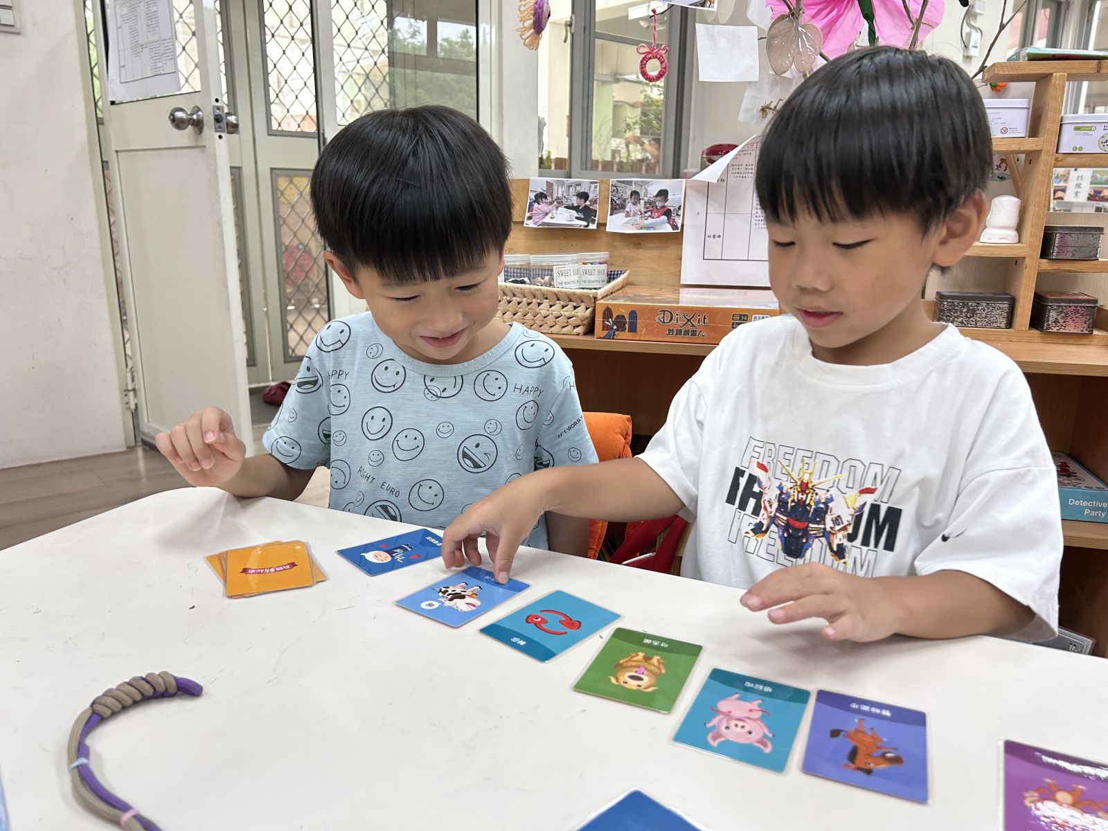 .透過照片認識幼兒園裡常出現的人物,隨著教師節的到來,孩子們思考自己想感謝的人,專注地製作感謝卡並在創作中展現想像力與手眼協調的能力。讓孩子體驗表達謝意的方式。