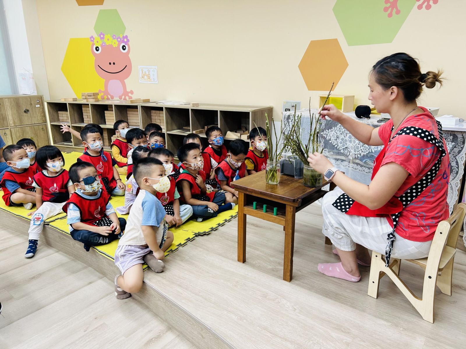 .孩子以小劇場的方式演繹昆蟲與植物的共生關係。