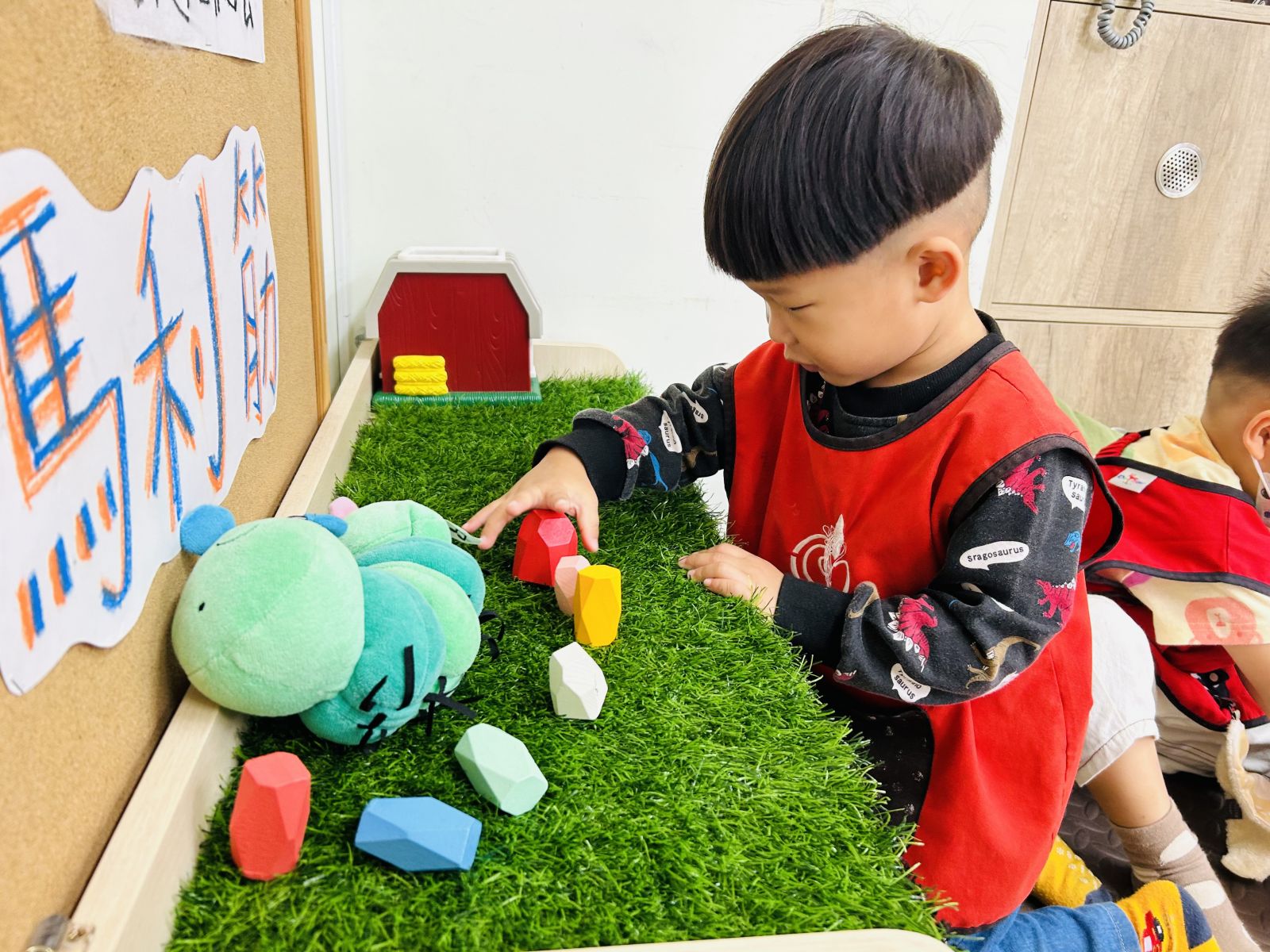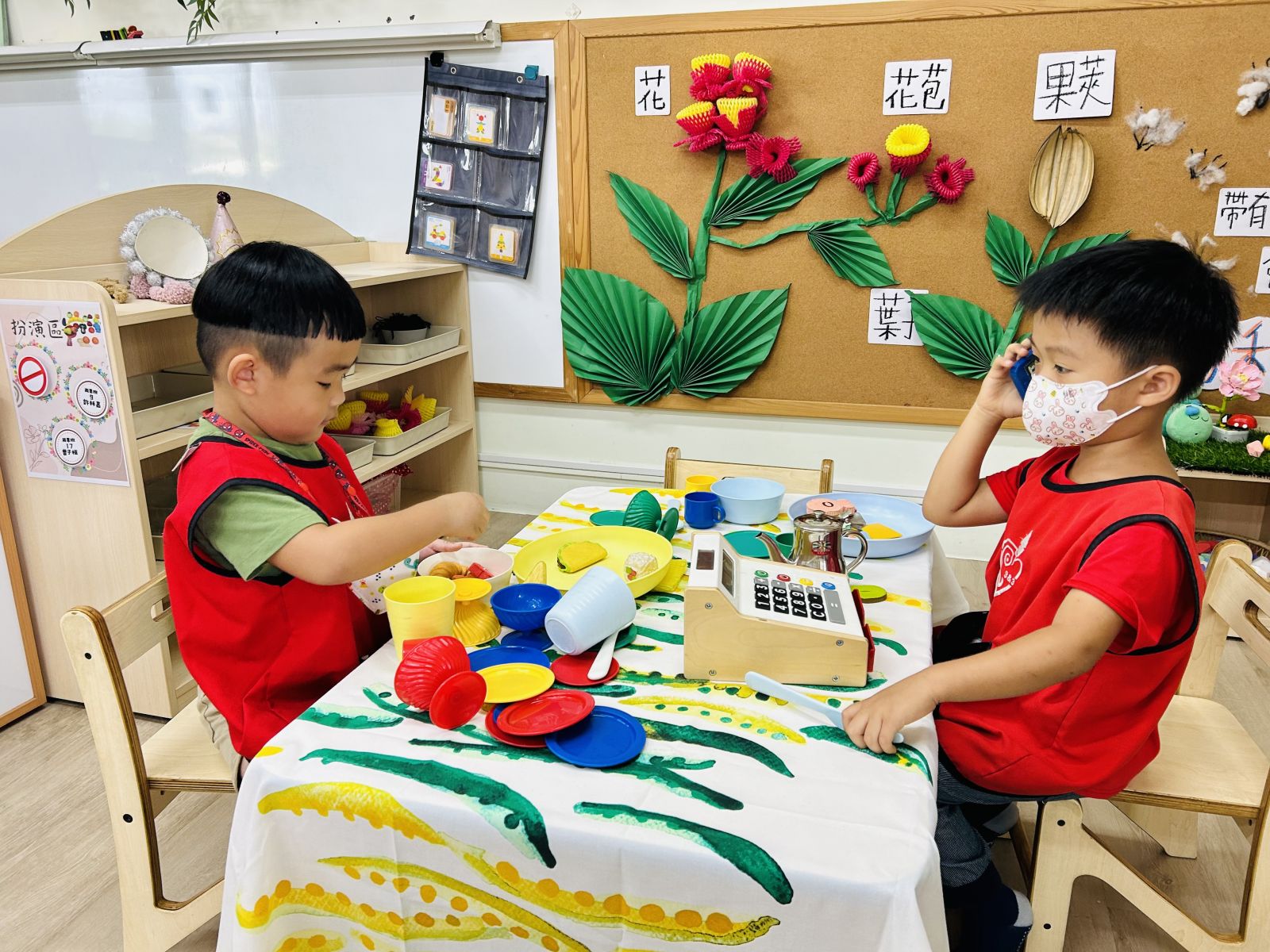 .利用黏土結合扮演區,透過插花、自然素材營造花園,吸引昆蟲來。