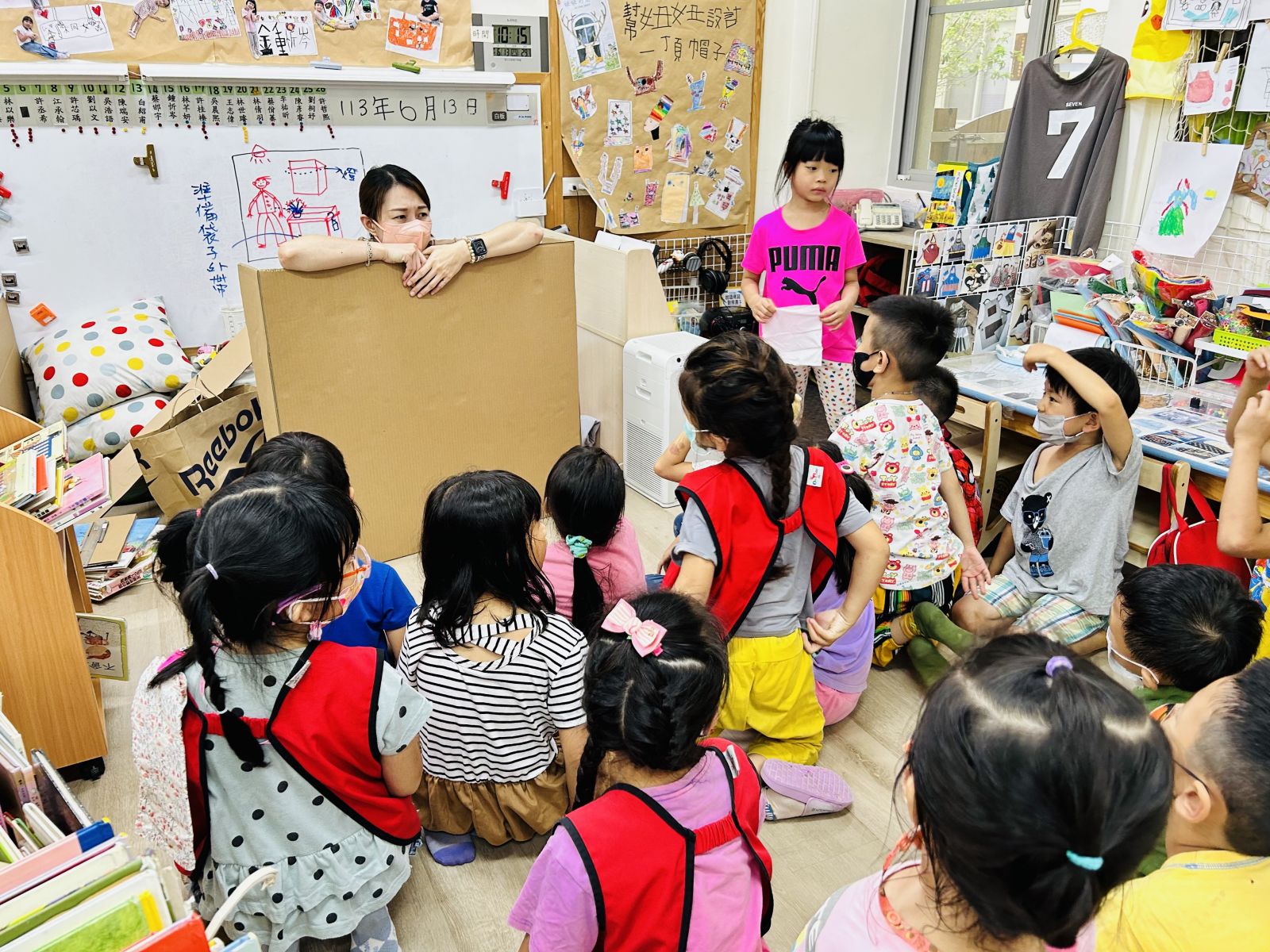 .孩子們分享「扮演很好玩!」並提到從中更能理解毛毛蟲在生態環境中的處境與牠所面對的危險。