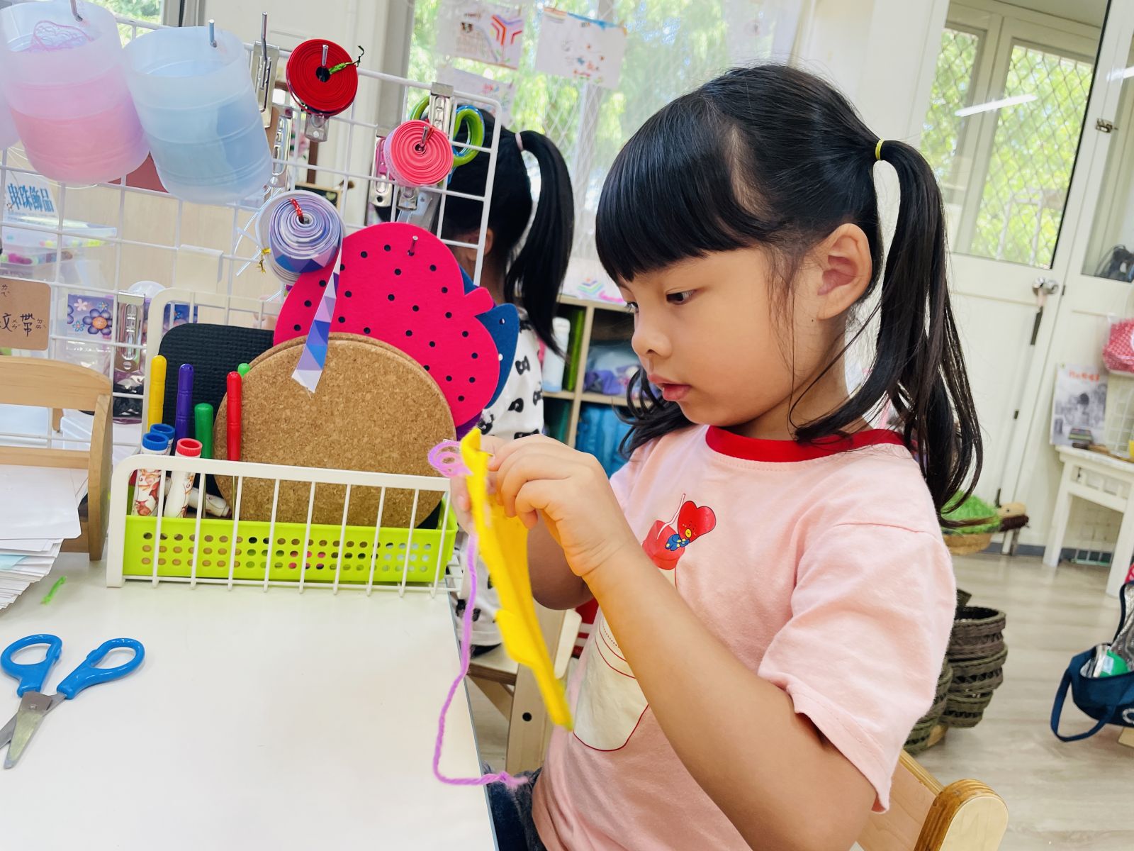 .串珠:幼兒透過不同序列串出獨一無二的手鍊或項鍊。