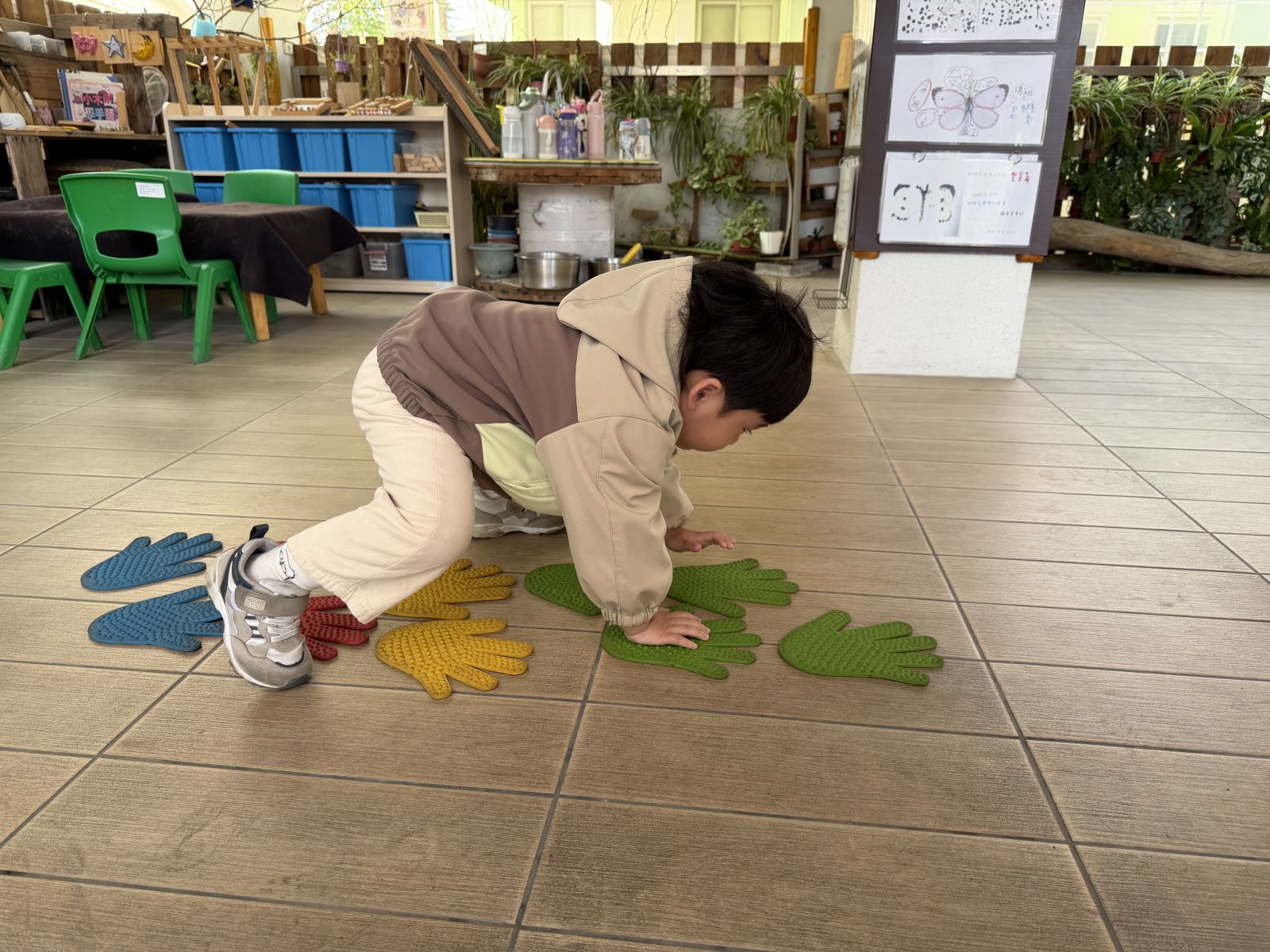 .蟲蟲危機:使用河石、感覺統合器材來變化不同的路徑,培養孩子的專注力及增加反應力。
