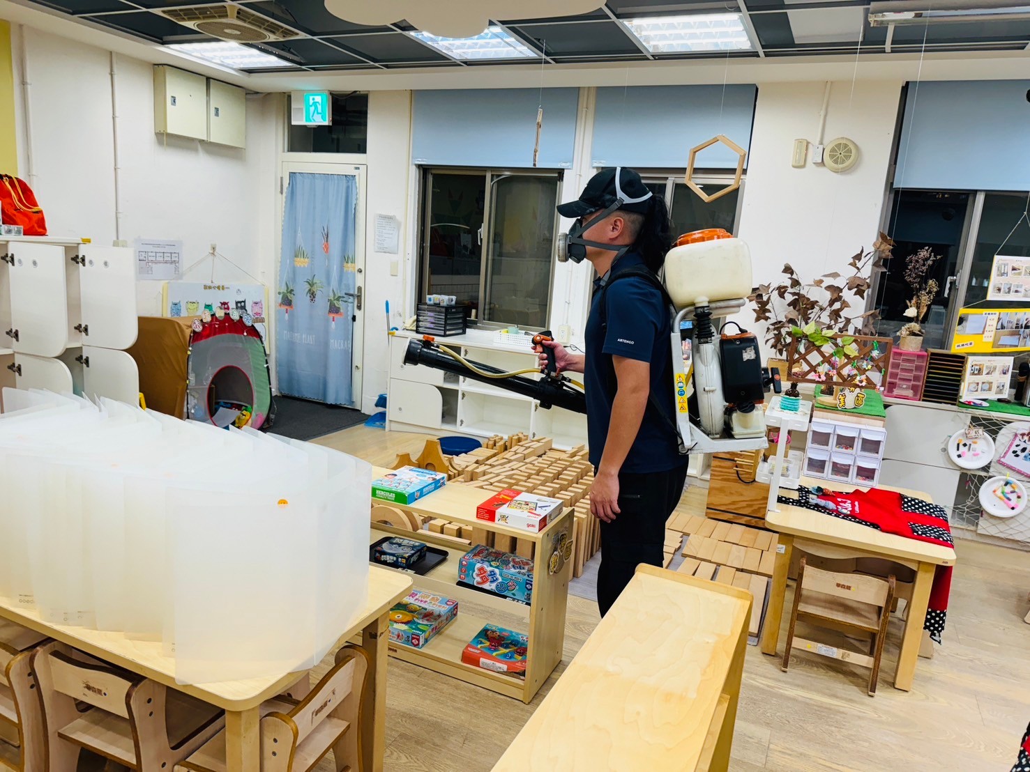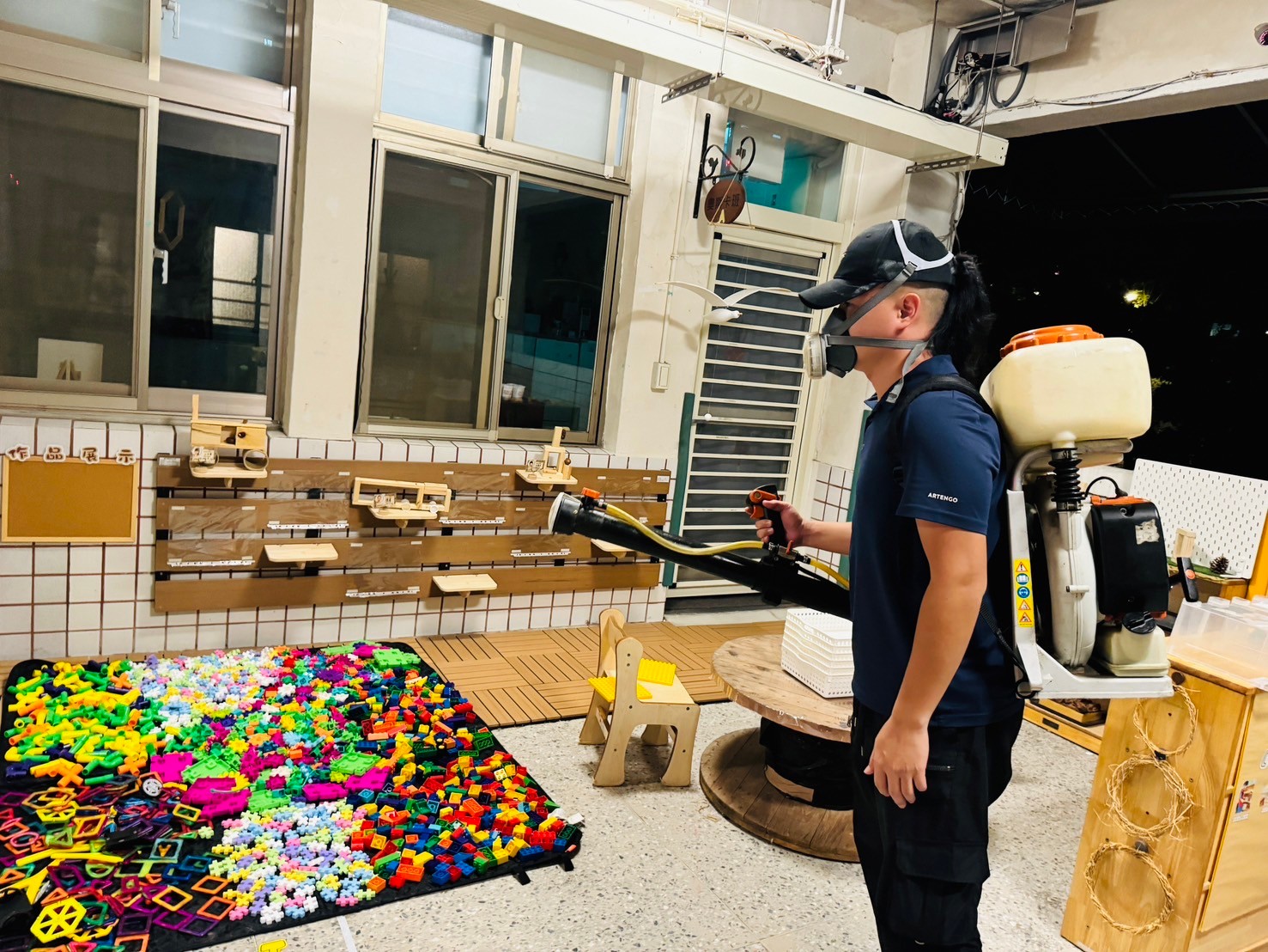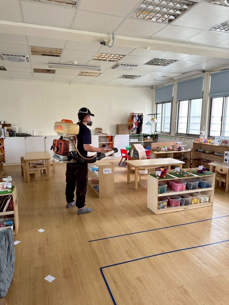 本幼兒園每學期末均聘請專業廠商進行全面環境消毒,確保教室、遊戲區及公共空間的衛生安全,為幼兒提供健康無虞的學習環境,讓家長安心。