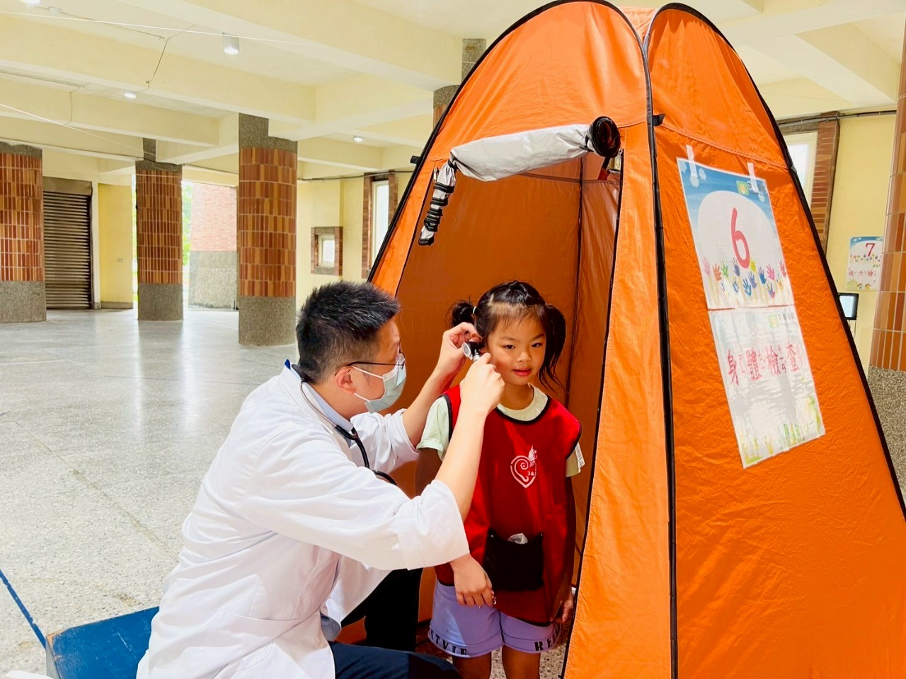 在專業醫護團隊的細心檢查下,孩子們一一接受視力、聽力、牙齒及一般健康檢測。