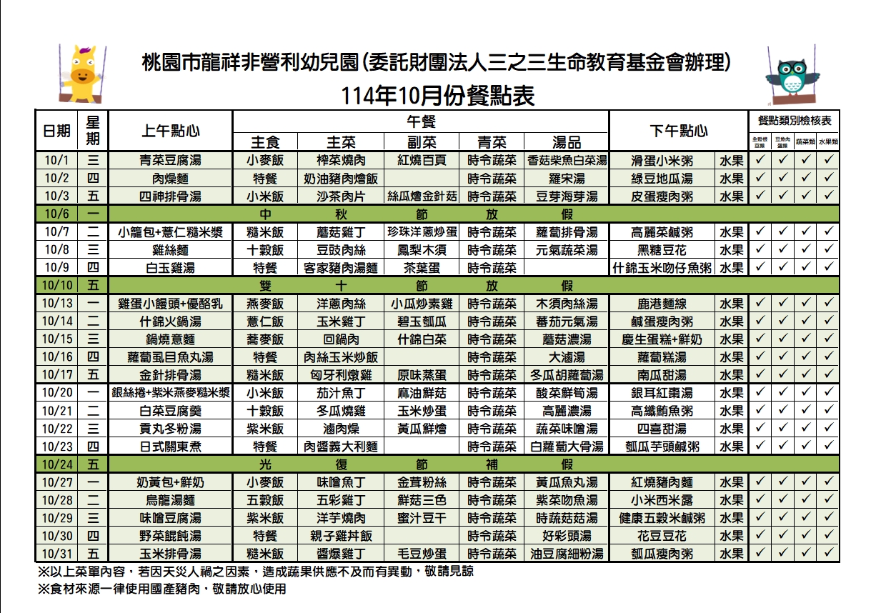 114年十月份餐點表