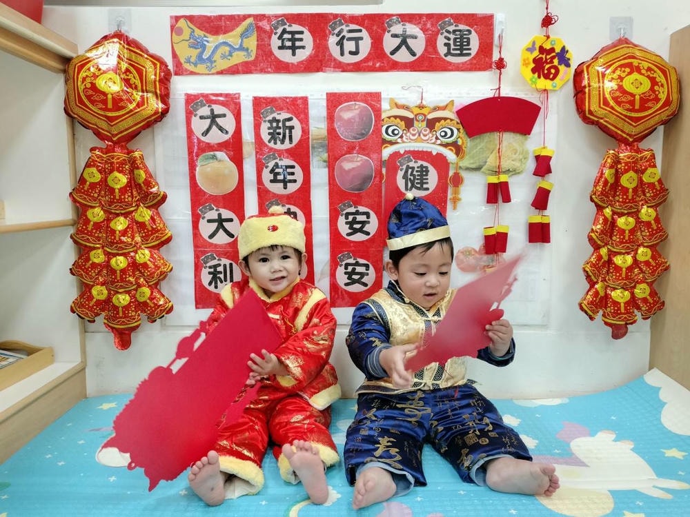 穿新衣戴新帽跟同學一起拜年