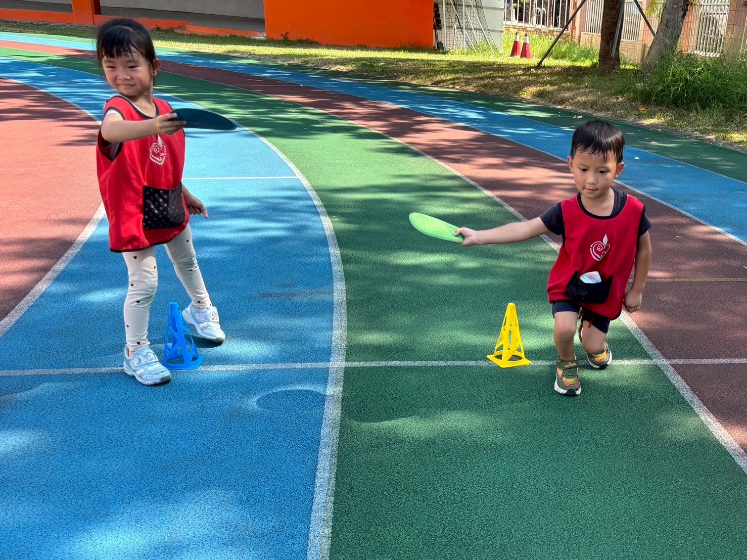 ☼ 飛盤-設立不同的目標讓幼兒能練習心肺耐力、手部抓握力及平衡力。