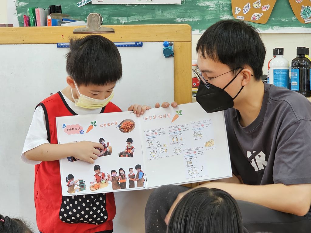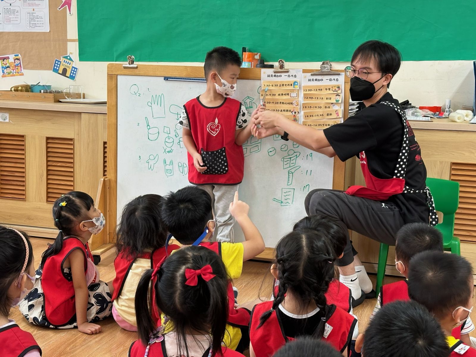 孩子們輪流擔任小老師,嘗試將自己會的內容分享給還不太會的同學。孩子能以簡單語言講解步驟,主動示範並鼓勵對方;孩子在過程中學習表達與傾聽。活動中展現出初步的領導力、同理心與合作能力,提升學習動機與自信心。