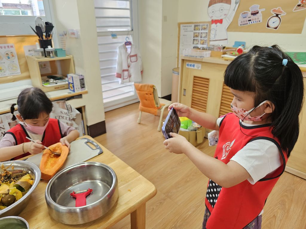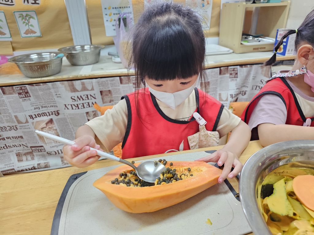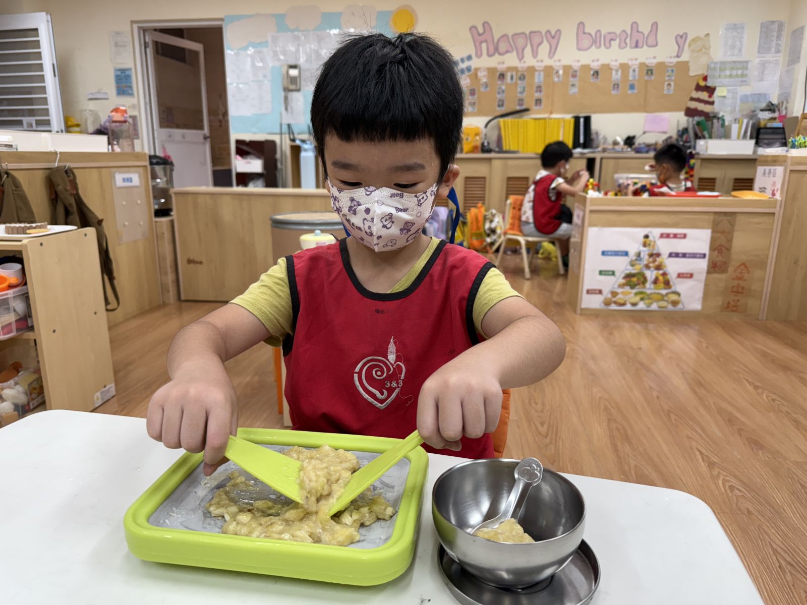 主題課程中介紹基本功學習抓握、切、攪拌、倒水等基礎烹飪技能,提升手部控制力,辨別生活環境中能做或不能做的事,嘗試操作煮菜流程,發現問題時孩子能主動詢問老師或是同儕唷!