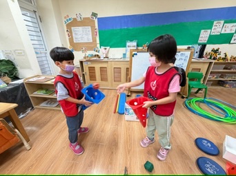 透過夾彈珠、舀毛球、手串珠子等精細操作活動,讓幼兒練習雙手協調與手指肌肉控制,增進手部小肌肉的靈活度與穩定性。這些操作不僅能提升孩子的手眼協調,也為日後生活技巧建立良好基礎。結合掃地教具及模擬生活道具,讓幼兒在遊戲中練習日常生活技能,如打掃、分類、收拾等,培養基本的生活自理能力與責任感。孩子們在過程中會觀察、模仿,並主動參與操作,增強自我照顧與自我服務的信心與意願。目標是讓孩子透過有趣的學習教材,建立對「自己會做」的成就感,發展自我管理的能力,並從中學習照顧自己與周遭環境的基礎行為。