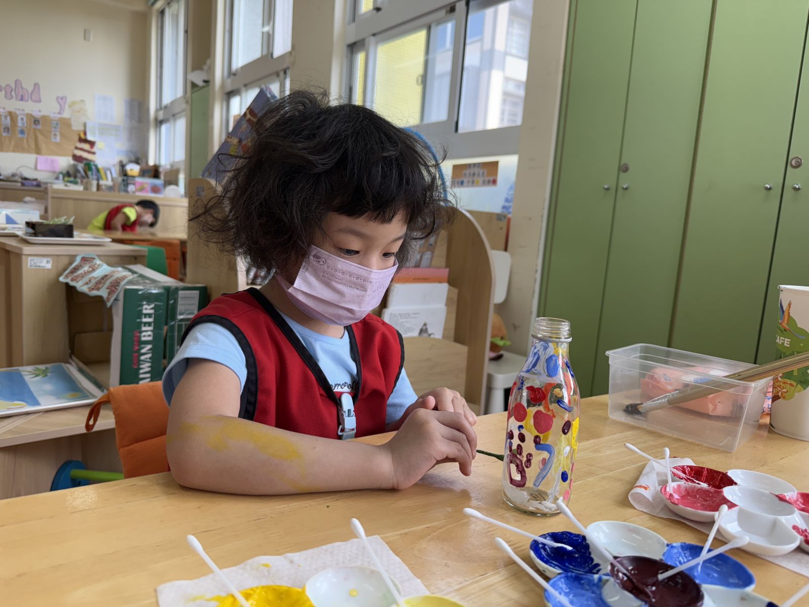 結合課程主題,孩子們動手製作「小怪獸心情瓶」,自由裝飾並設計獨特造型。在創作中發揮想像力,同時練習手部操作與美感表達。