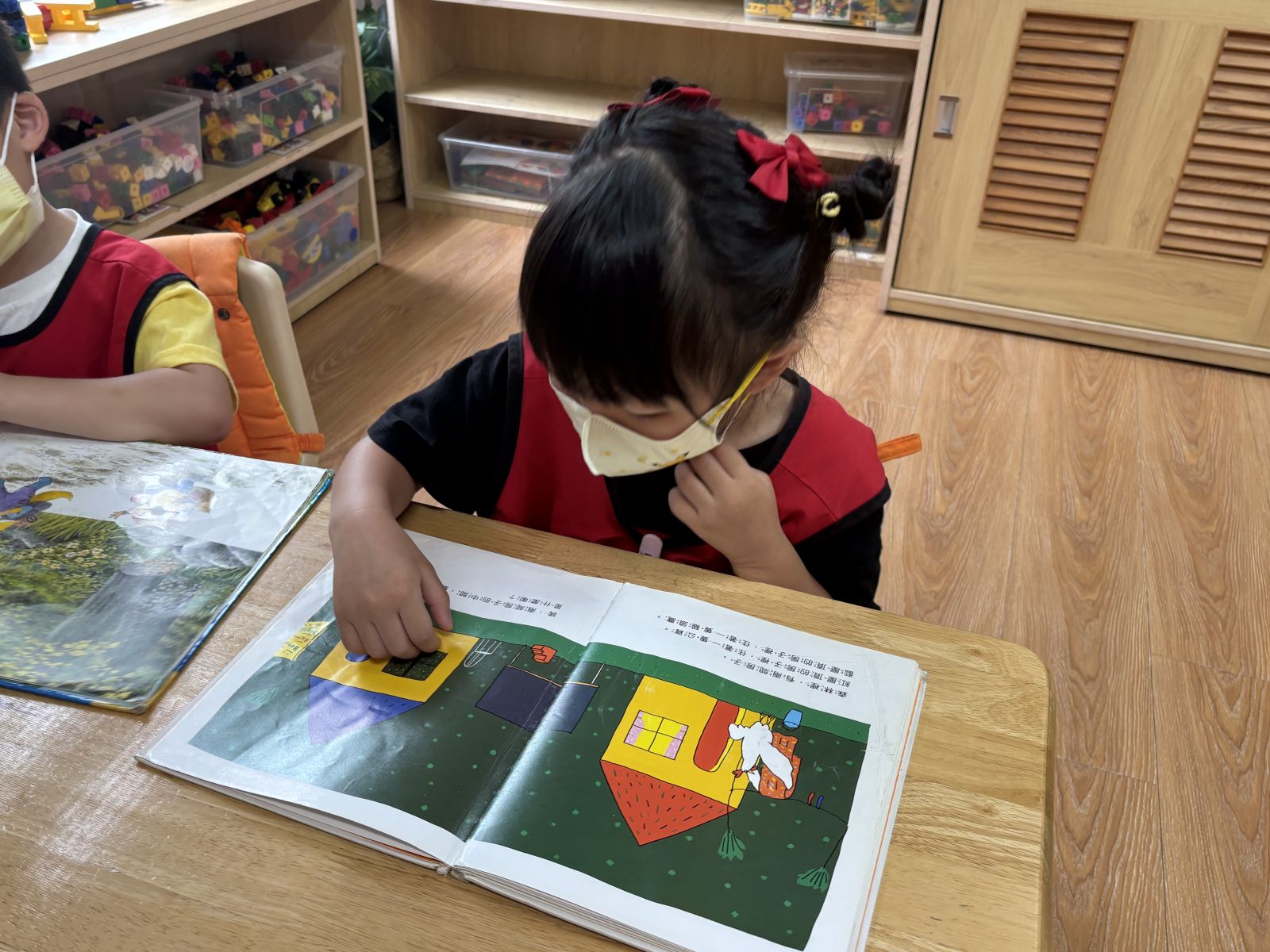 培養幼兒對語文的好奇與興趣,讓他們在輕鬆、遊戲化的環境中自然接觸語言。透過翻閱繪本與迷宮書,引導幼兒專注觀察畫面細節,嘗試描述圖像內容,提升語詞理解力與語言表達能力。運用古早味圖卡進行圖像與語詞的配對,幫助幼兒認識常見物品的名稱與對應語詞,建立初步的語詞概念與語意連結。幼兒在操作圖卡的過程中,也會主動開口說出圖卡內容,增進發音清晰度與口語表達自信。整體目標是透過視覺、操作與語言的結合,發展幼兒的語文能力,讓語文區成為孩子們喜歡待、喜歡說、喜歡玩的語言探索空間。