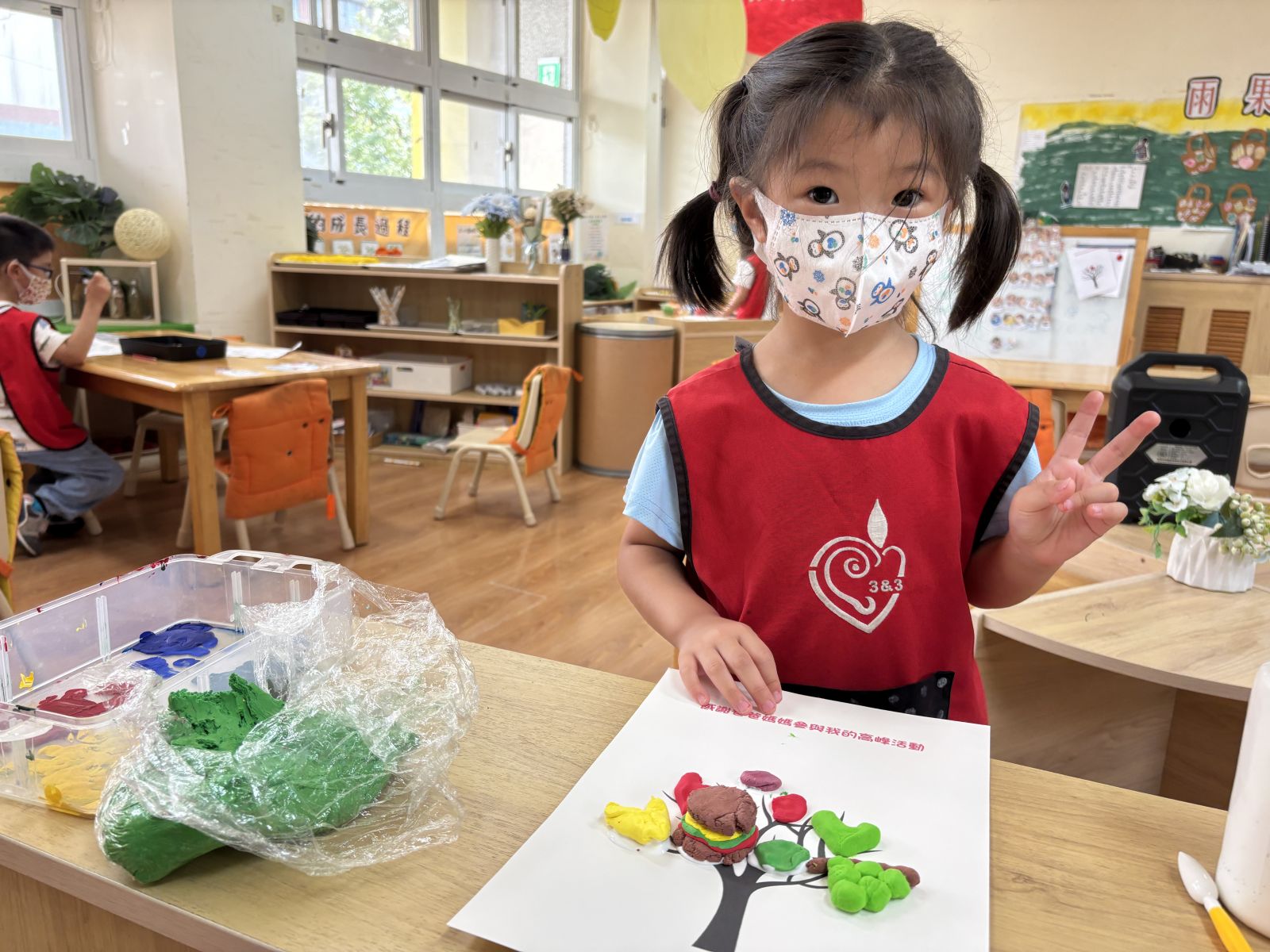 運用美勞區繪畫範例圖練習及搓揉黏土資源,創作出有趣的作品增進小肌肉發展。