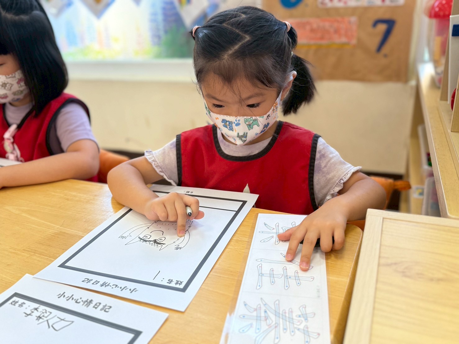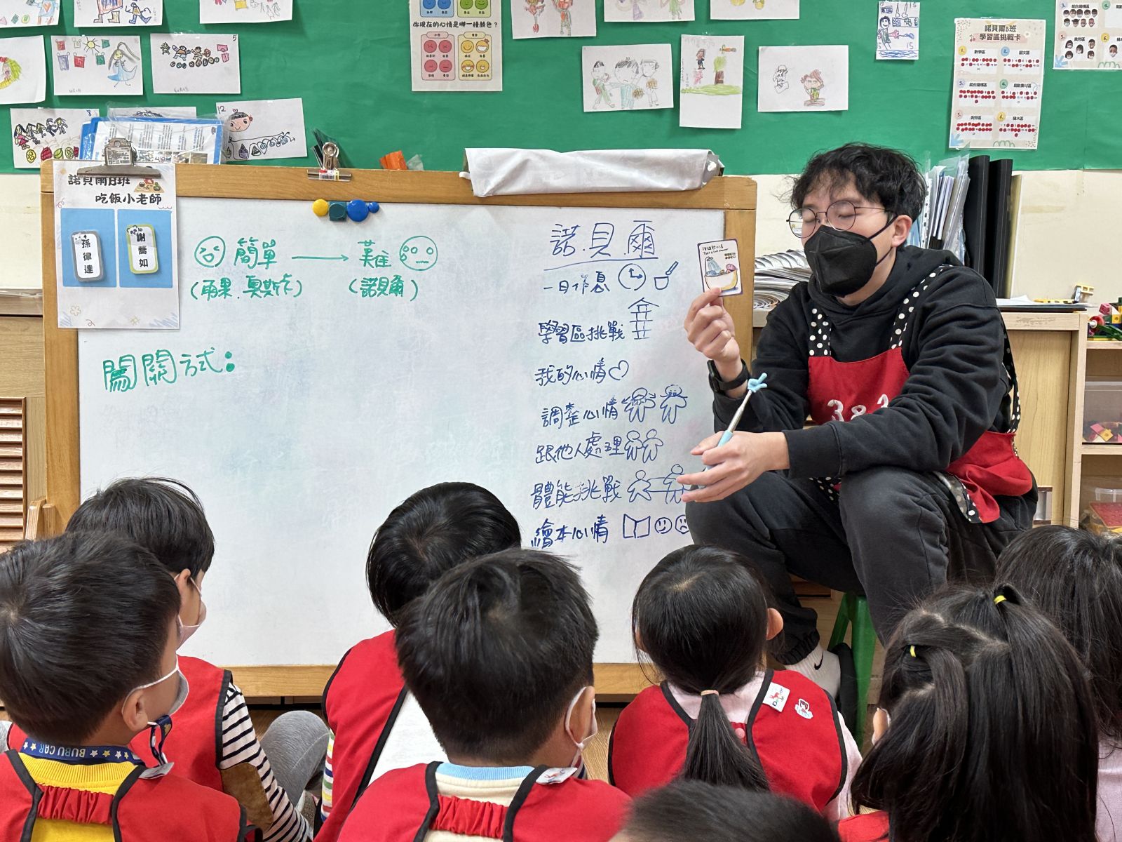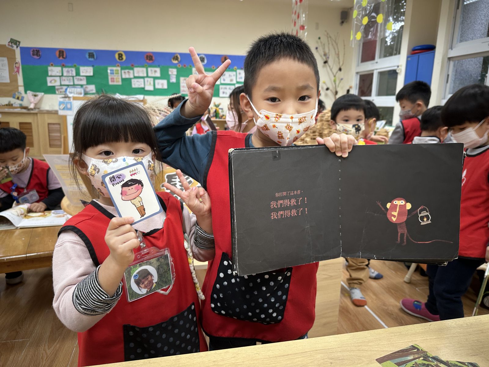 孩子們透過《彩色怪獸上學去》與《彩色怪獸情緒醫生》學會用顏色表達心情,並討論如何冷靜下來。大家創作了「心情日記」,記錄心情與原因,並透過每日分享練習表達與調節情緒。這讓教室變得更加溫暖與舒心。