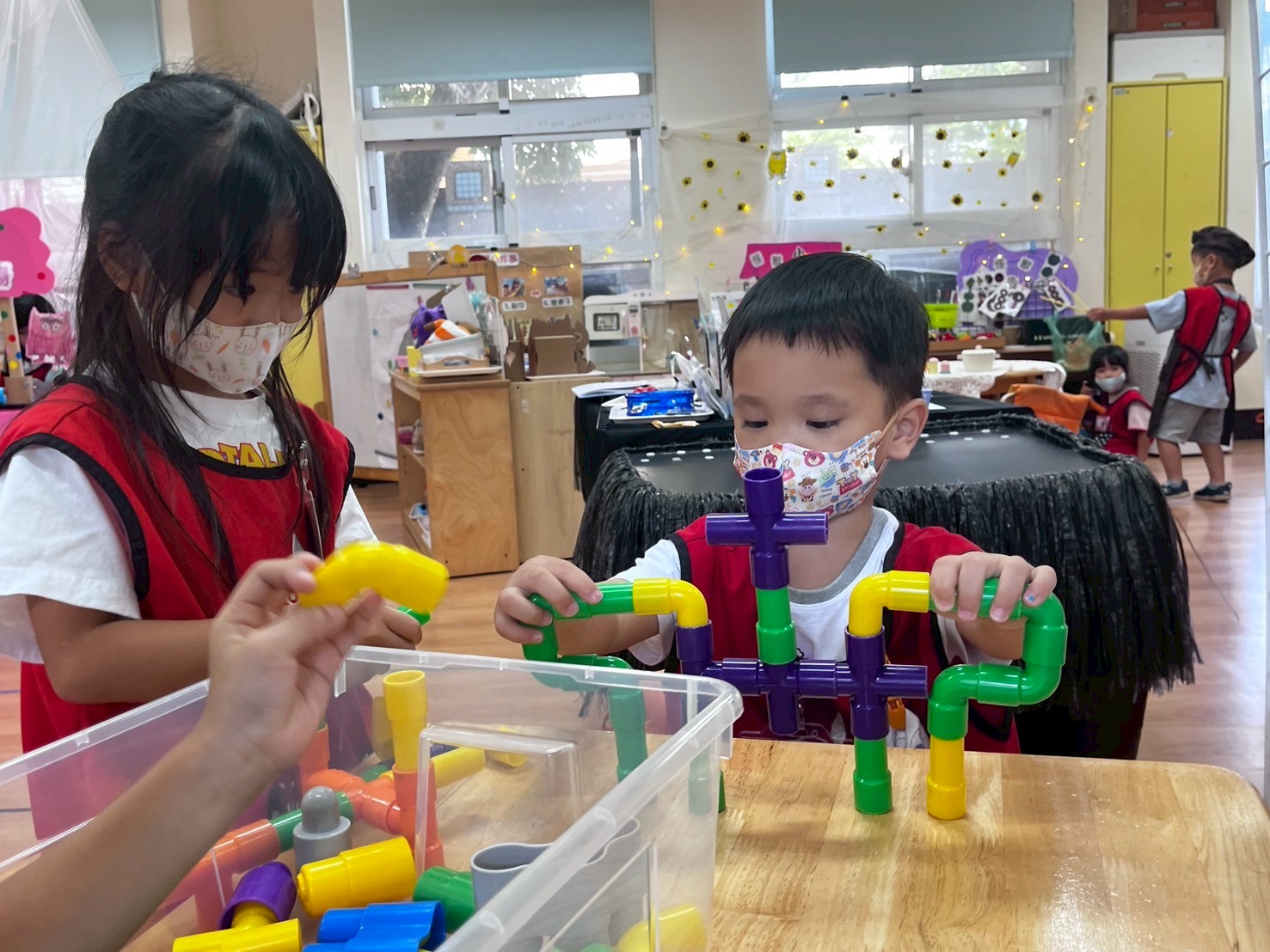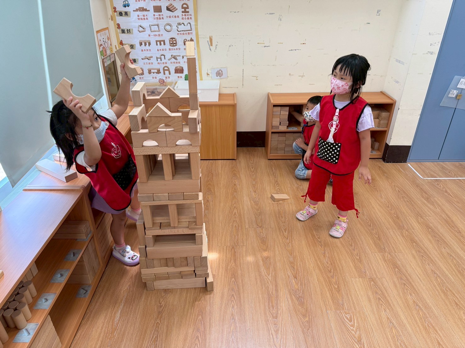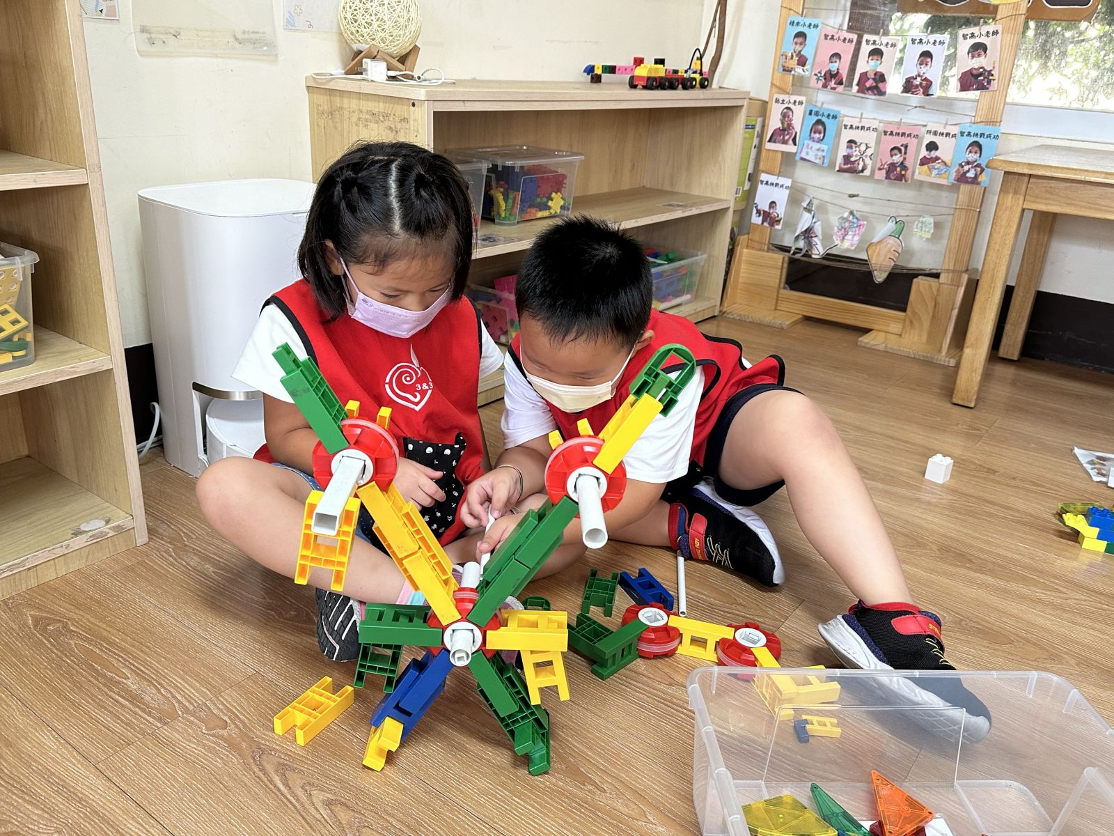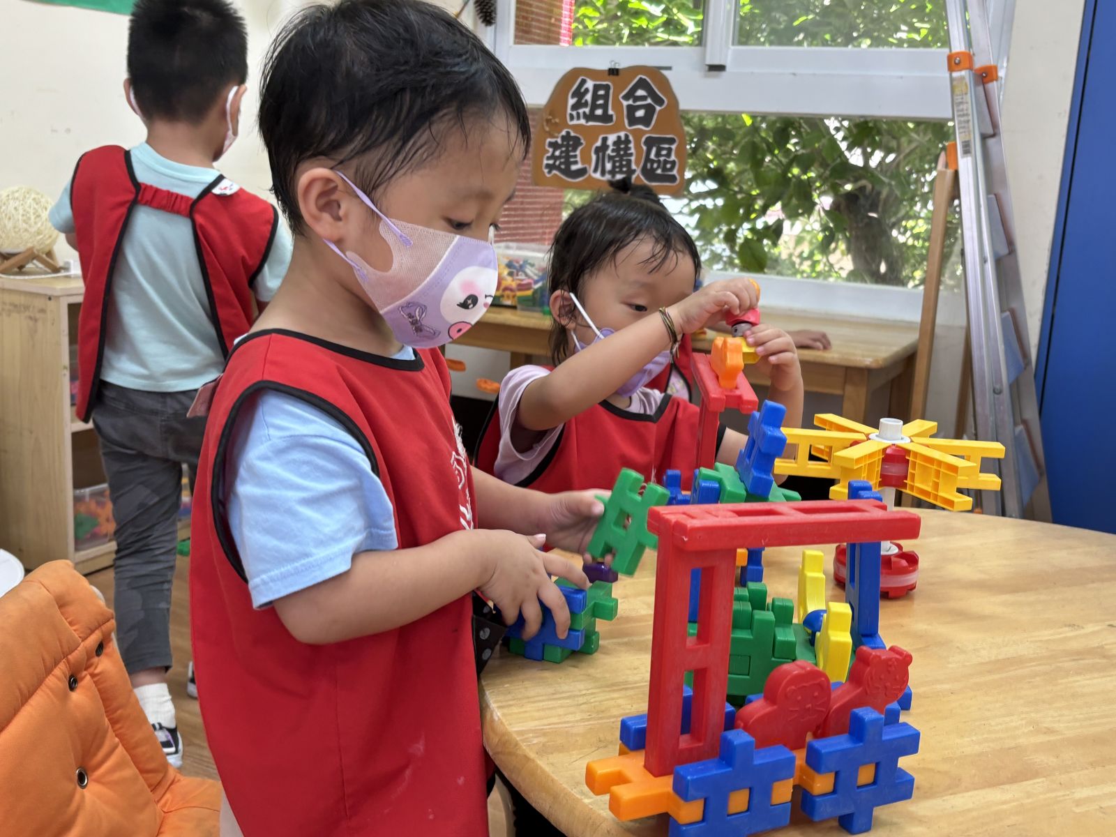 運用多樣建構教具,孩子在操作過程中不僅提升搭建能力,同時增進與同儕的人際互動與溝通技巧。