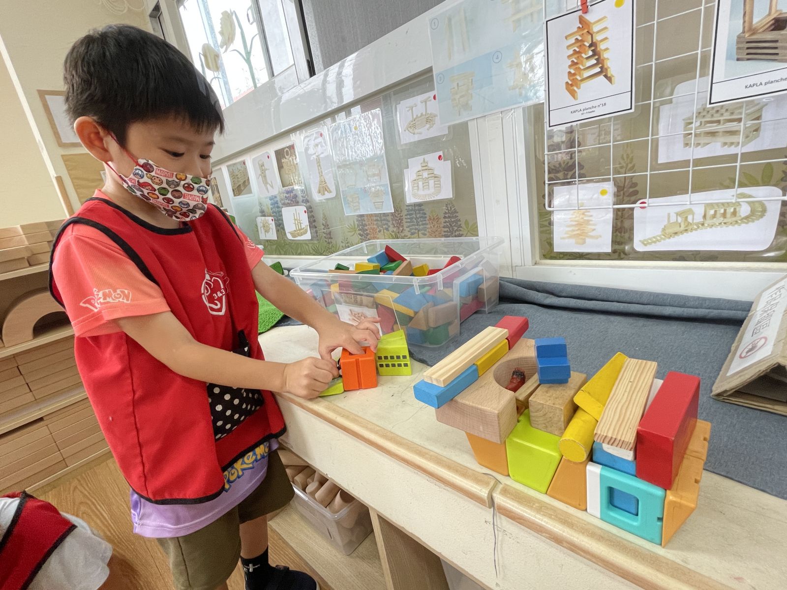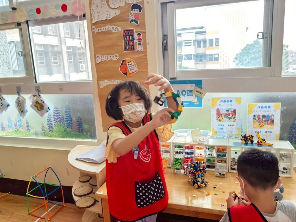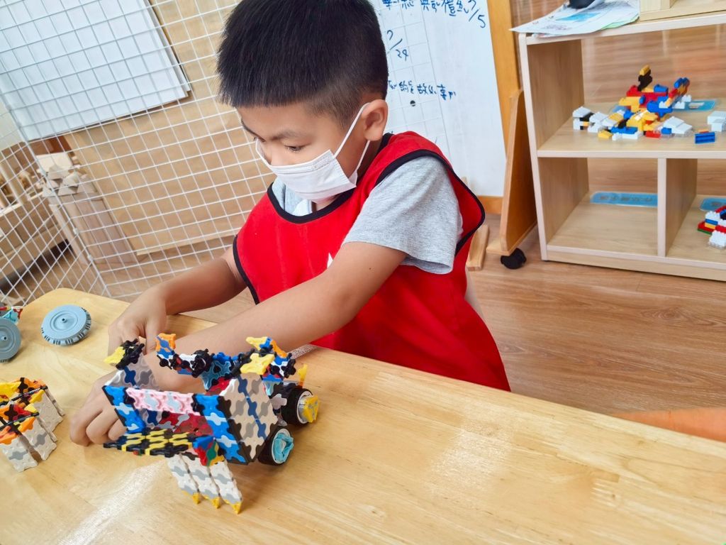 藉由各式組合教具,孩子們能藉由過程中拼湊出創意作品及與同儕互相交流製作方式。