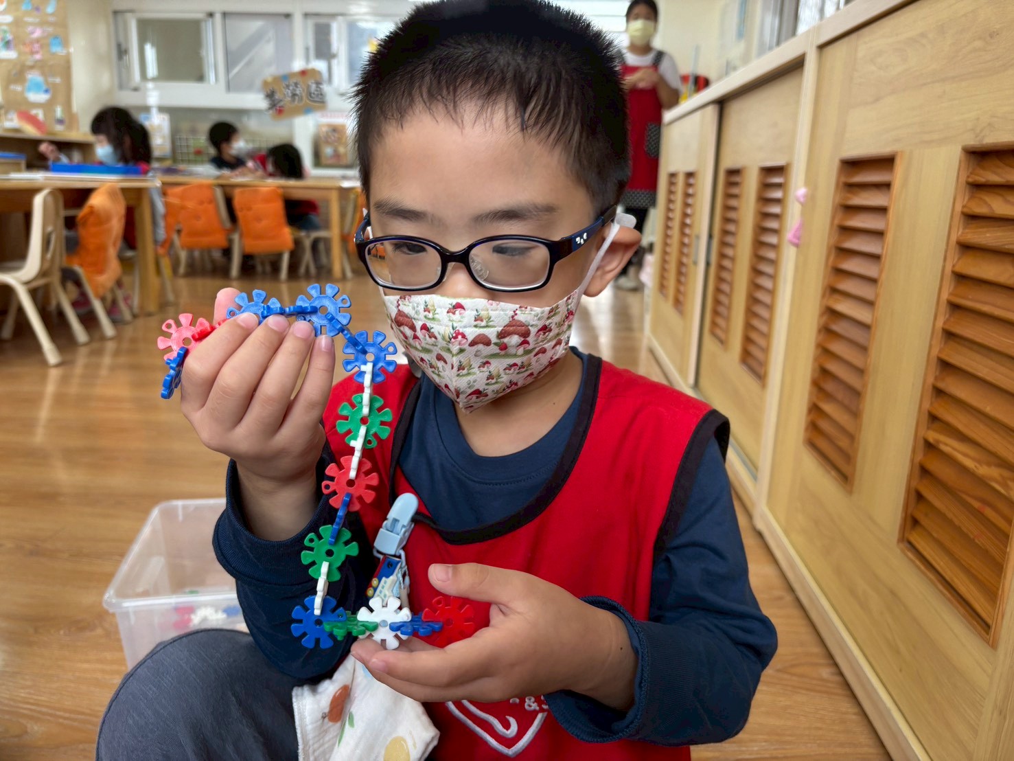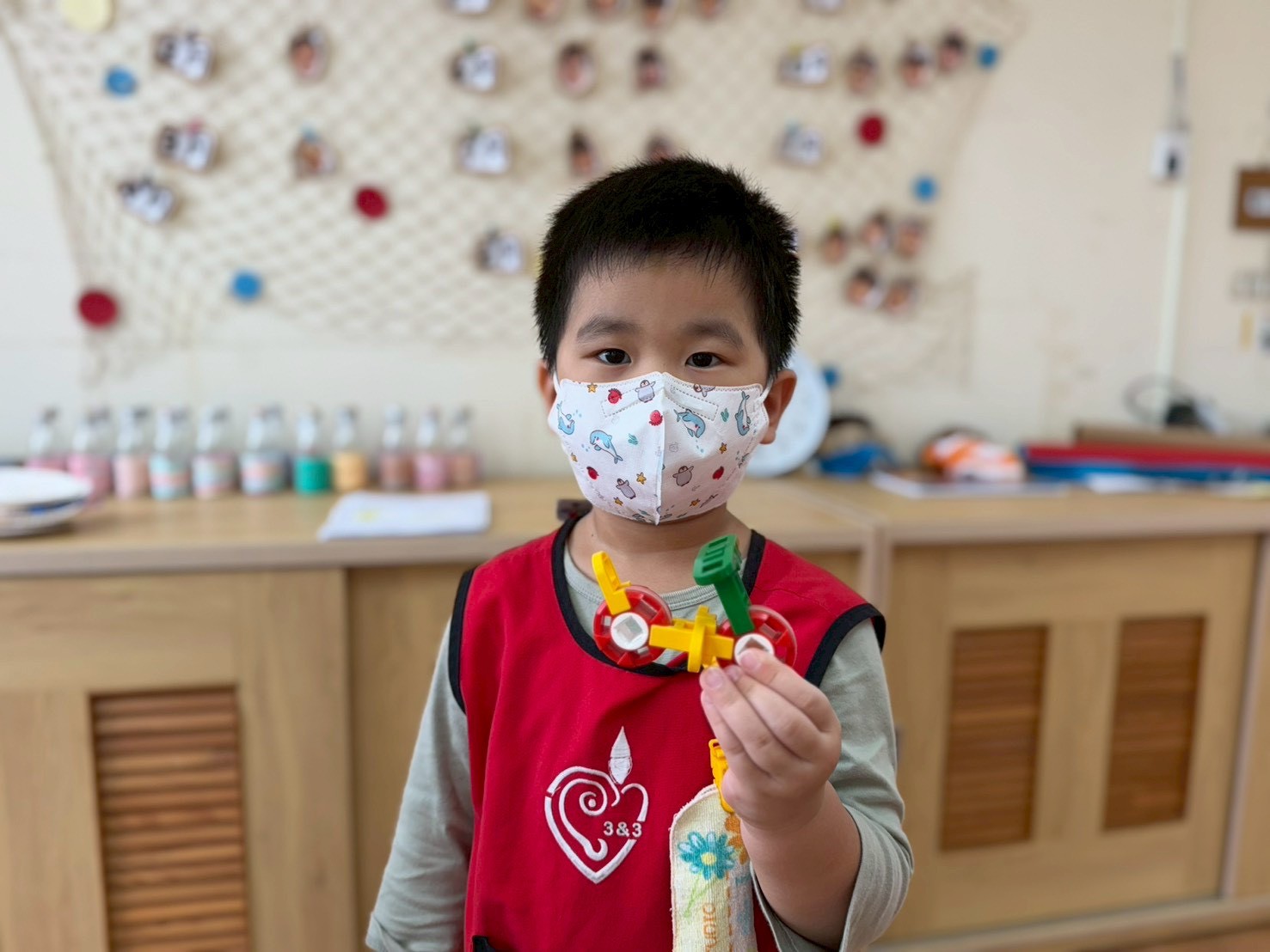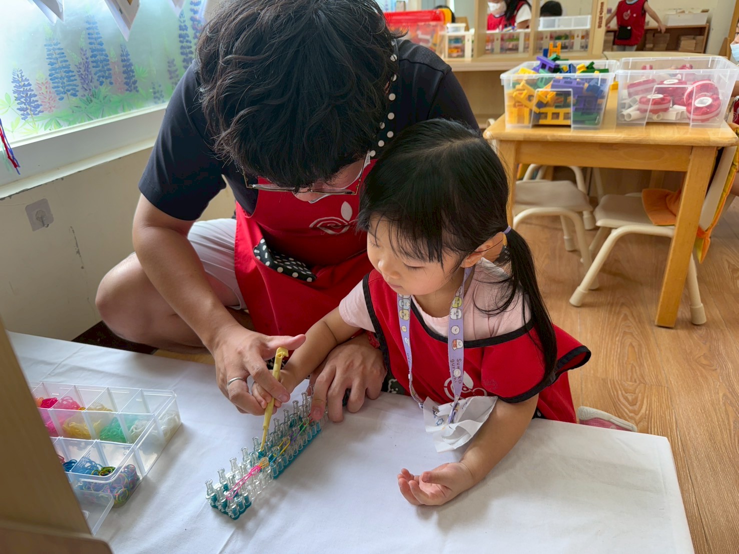 藉由各式組合教具,孩子們能藉由過程中拼湊出創意作品及與同儕互相交流製作方式。