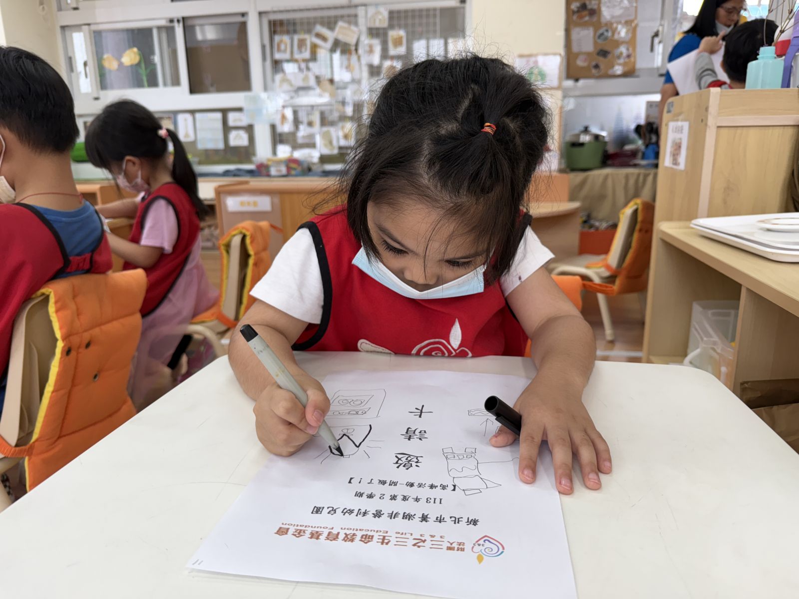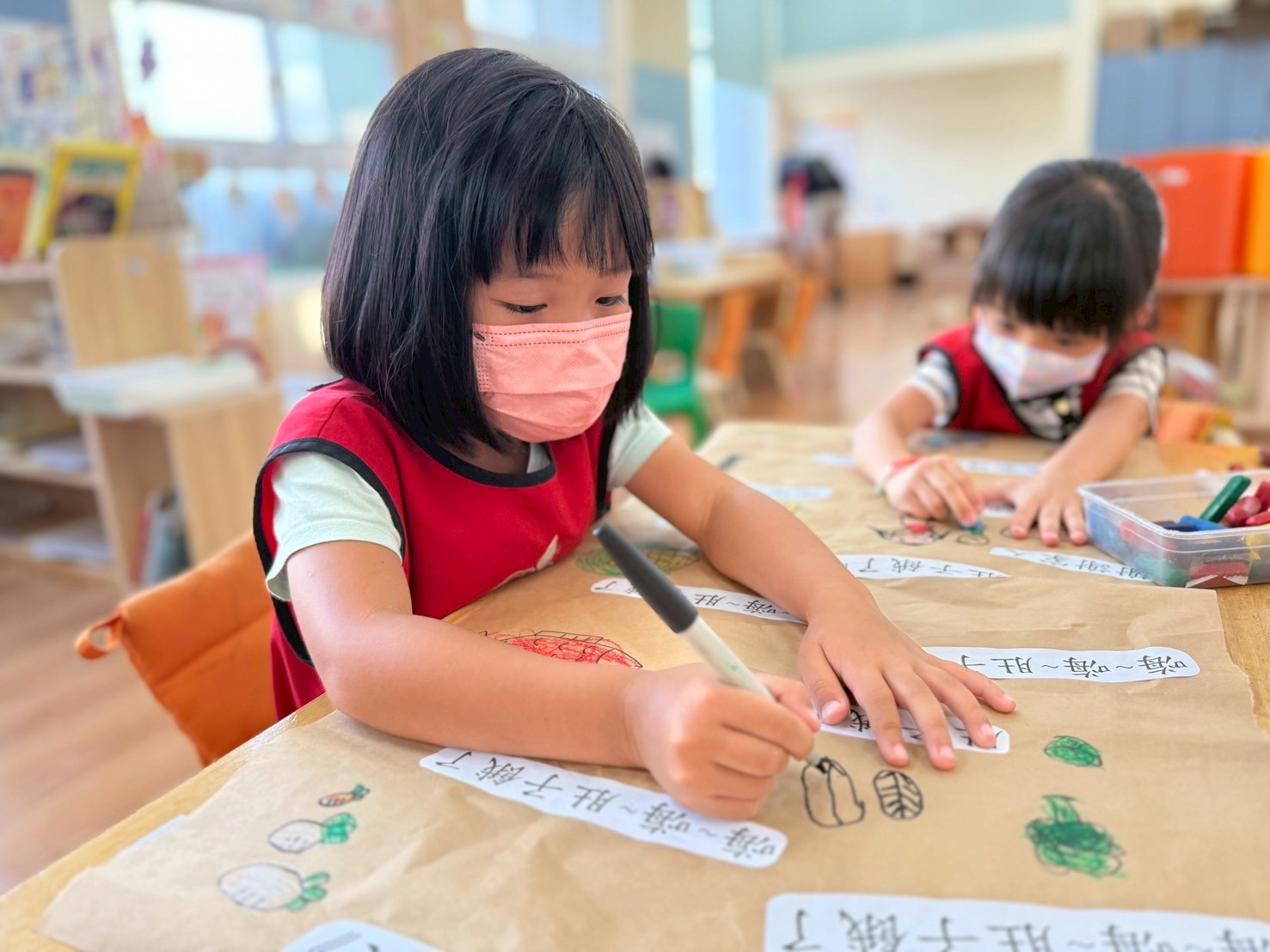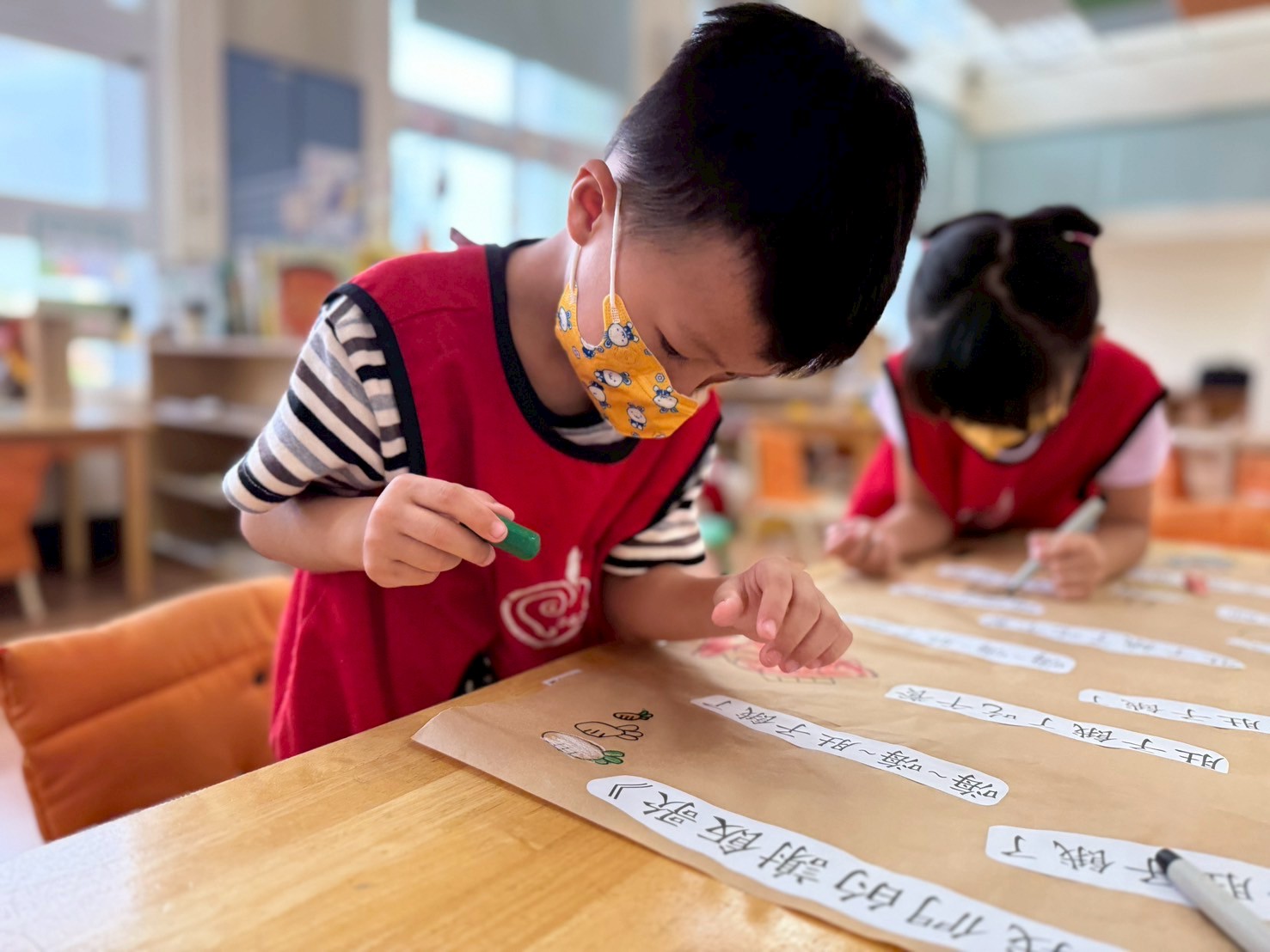 透過豐富的圖書、字卡、拼音遊戲、角色扮演與寫畫活動,孩子們在自在探索中愛上「說、聽、讀、寫」的表達樂趣。