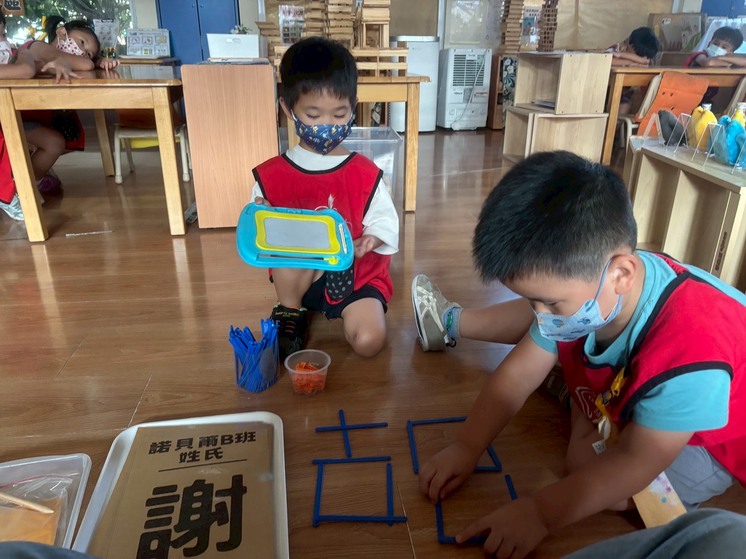 隨著新學期的開始,孩子透過團體課程認識與操作學習區的方式。
