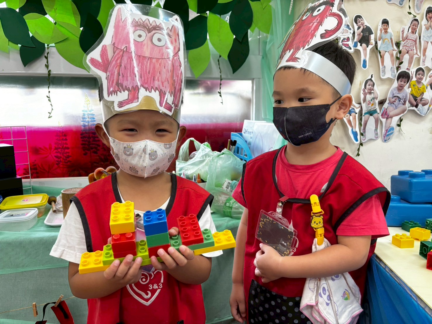孩子們透過「小怪獸的行李箱」猜學習區,展開有趣的探索。接著進行生活自理闖關,成功即可獲得怪獸能量卡。最後在彩色怪獸模仿與心情角落中,練習表達情緒、分享心情。