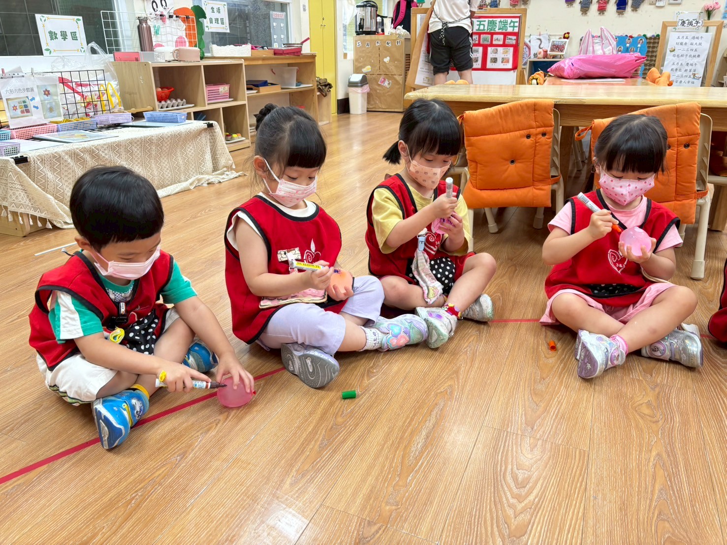 本週孩子們透過繪本回顧點心製作的經驗,練習用自己的話分享當時的感受。動手製作水球大菜燕,體驗冰冰涼涼的觸感與成型的樂趣,孩子們玩得不亦樂乎。