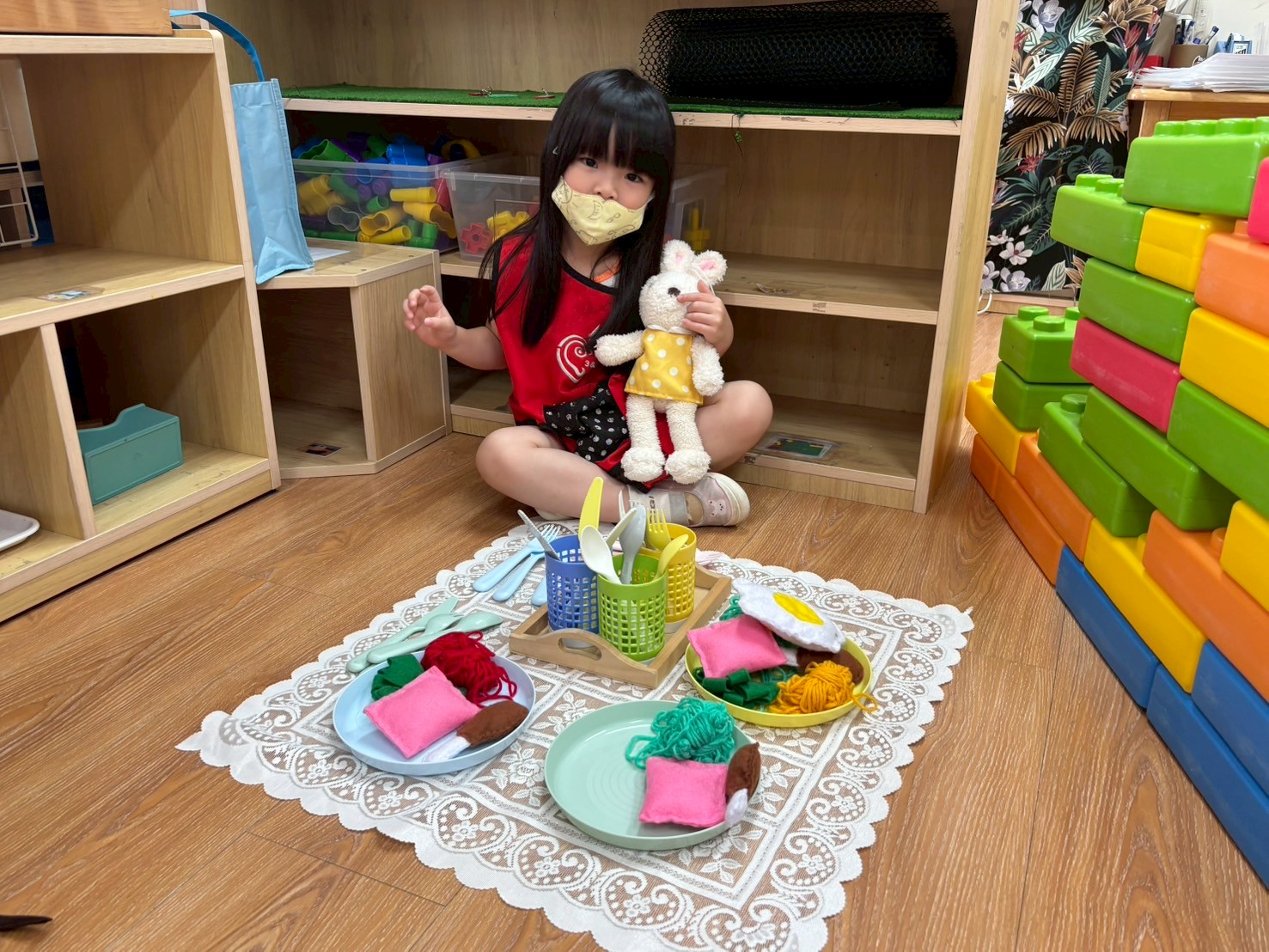 孩子們延續主題課程中的【擺盤活動】,練習依照食譜挑選食材並擺放相對應數量,不僅提升數量概念,也發展觀察與模仿能力,在遊戲中培養專注與邏輯思維。