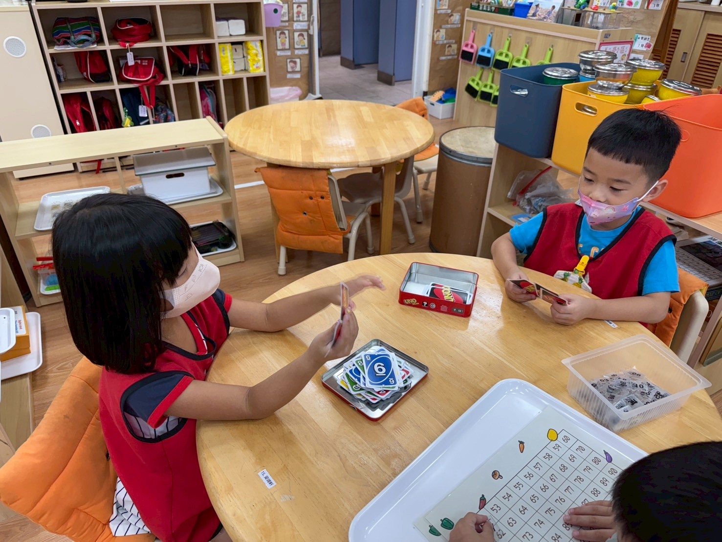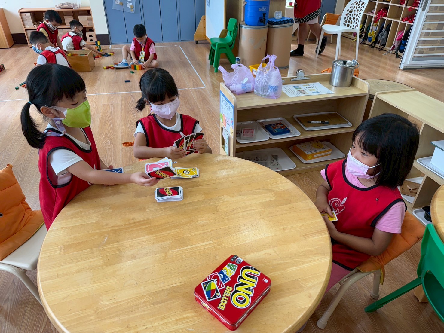 新增 UNO 桌遊,孩子們透過顏色、數字與圖像符號提升認知能力。遊戲中學習規則,邊玩邊快樂學習,增進專注與合作能力。
