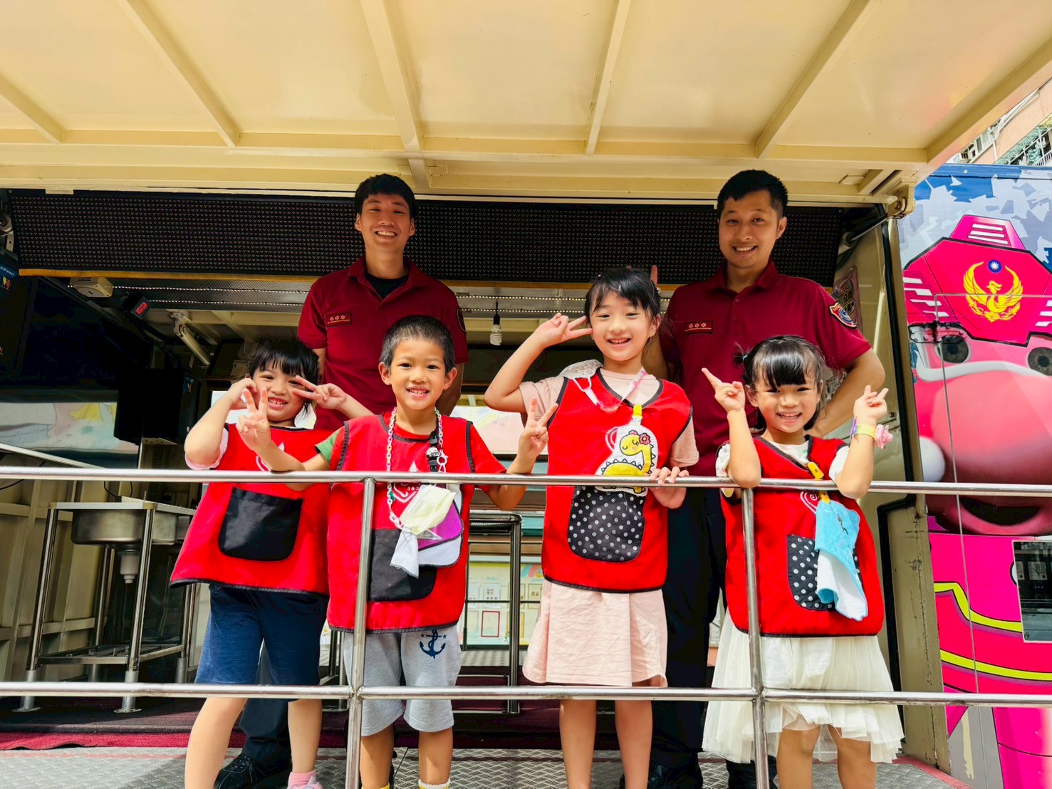 這次邀請萬芳消防分隊隊員到園內,向小朋友宣導防災防震知識,並讓孩子實際體驗火災時使用滅火噴水帶,透過生動教學提升防災意識與自我保護能力。