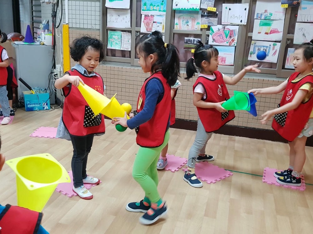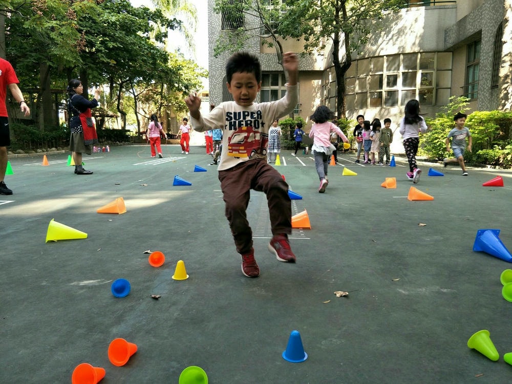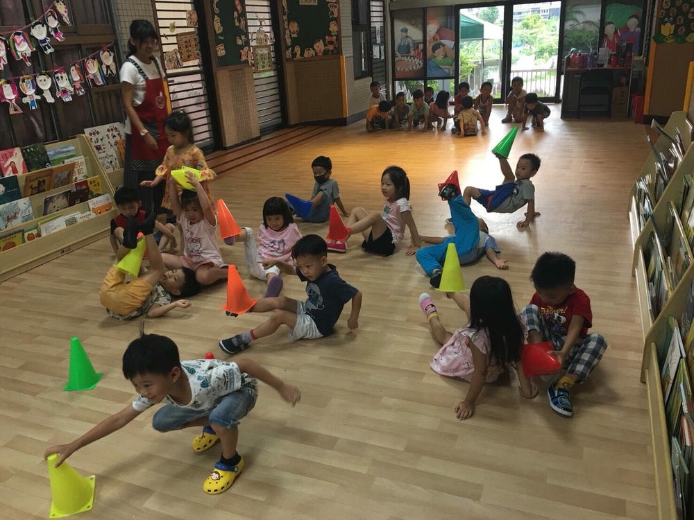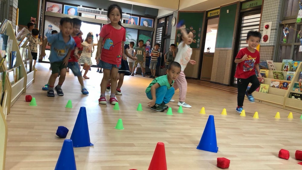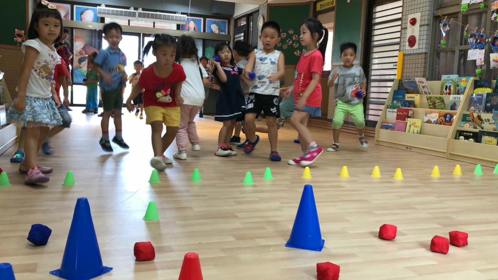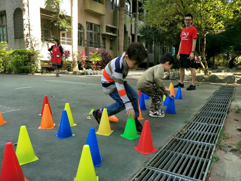 一個三角錐可以變化出多樣有趣的體能活動,老師帶領幼兒使用三角錐,提升移動性的運動技能,同時訓練幼兒平衡感、手眼協調的能力。