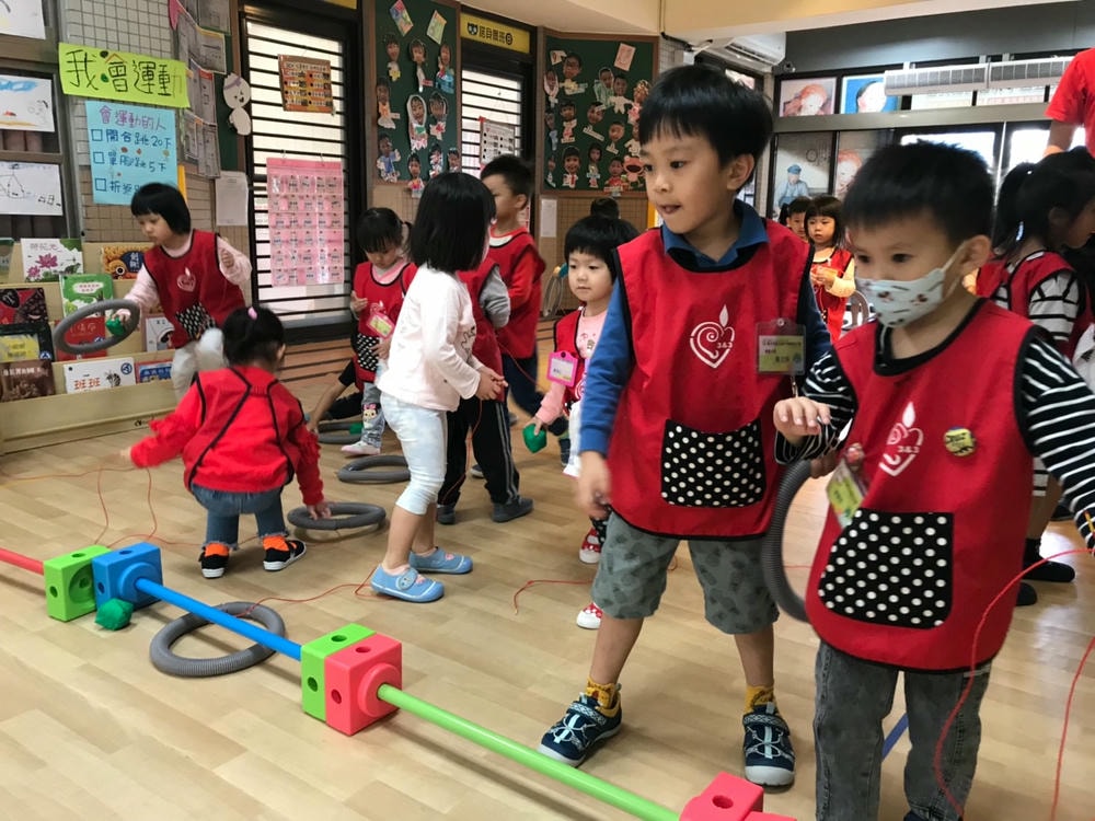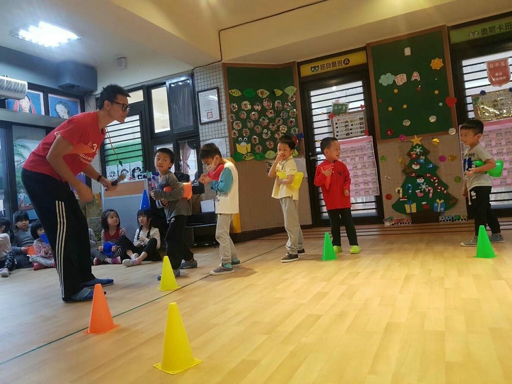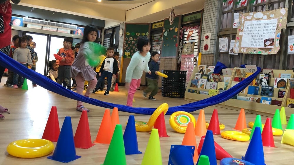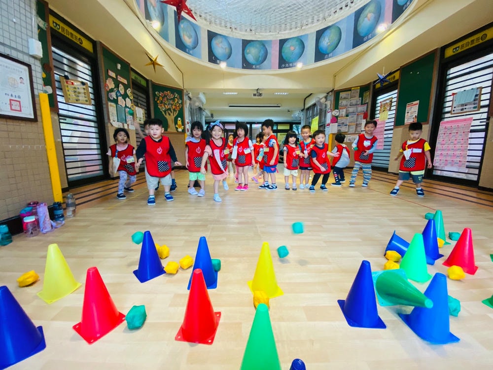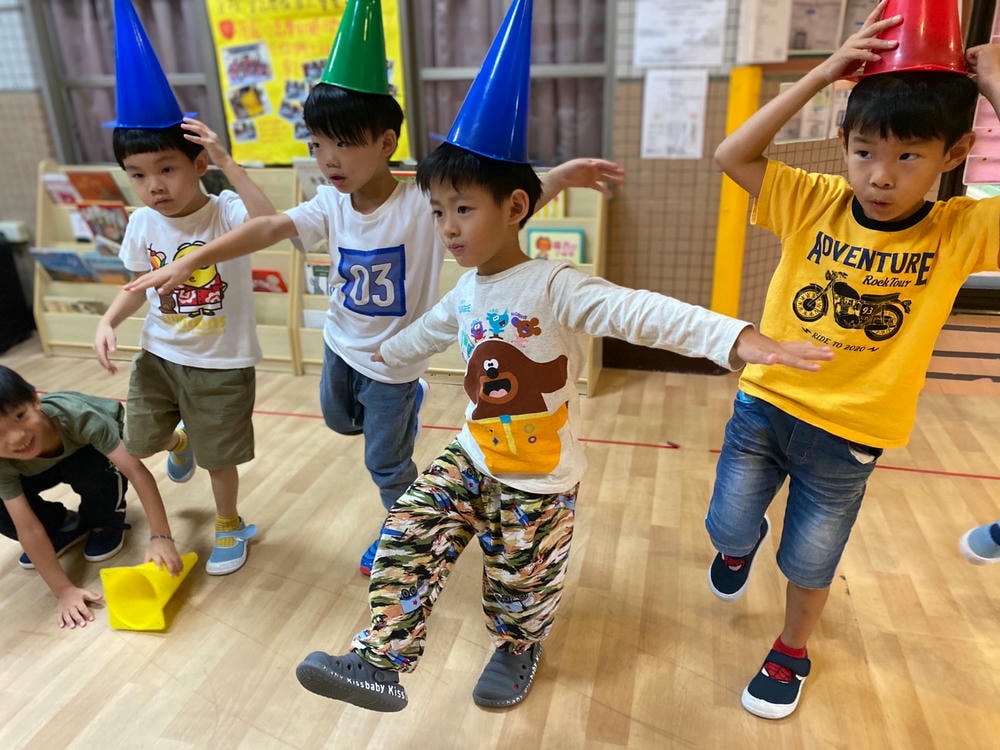 一個三角錐可以變化出多樣有趣的體能活動,老師帶領幼兒使用三角錐,提升移動性的運動技能,同時訓練幼兒平衡感、手眼協調的能力。