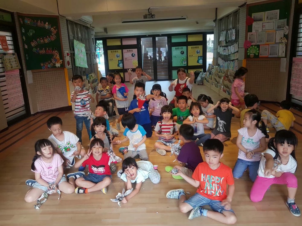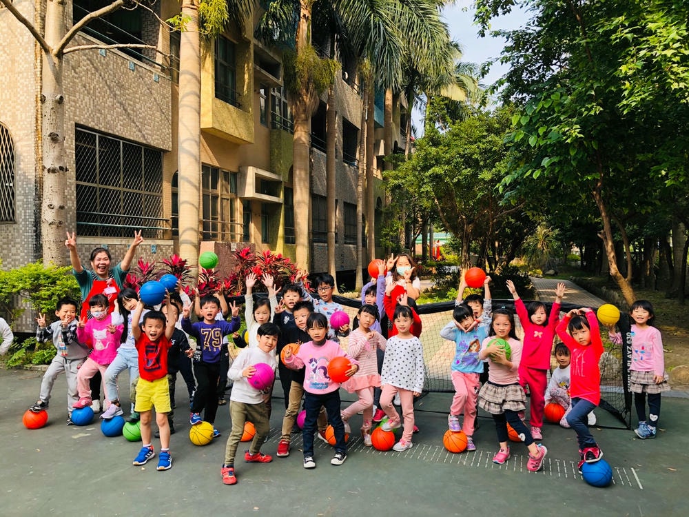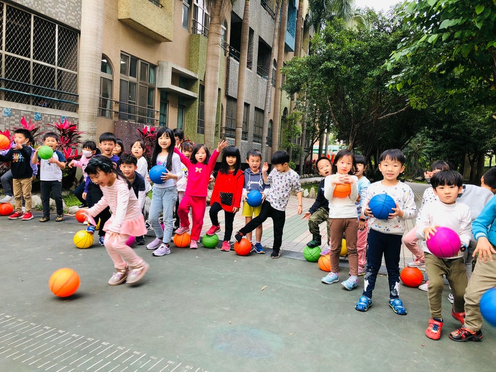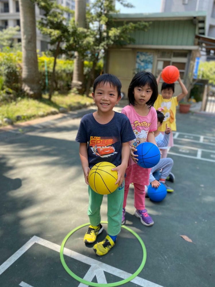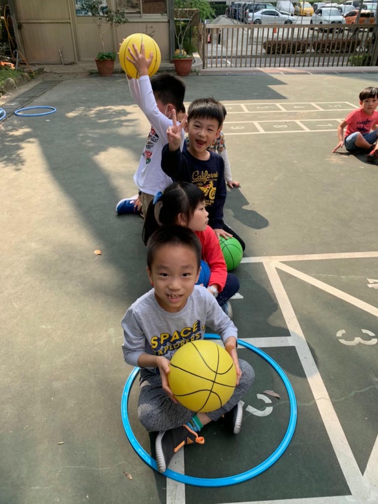 老師帶領我們玩排球,認識排球的基本打法 托球、發球還有殺球,我們都是小小排球選手喔!