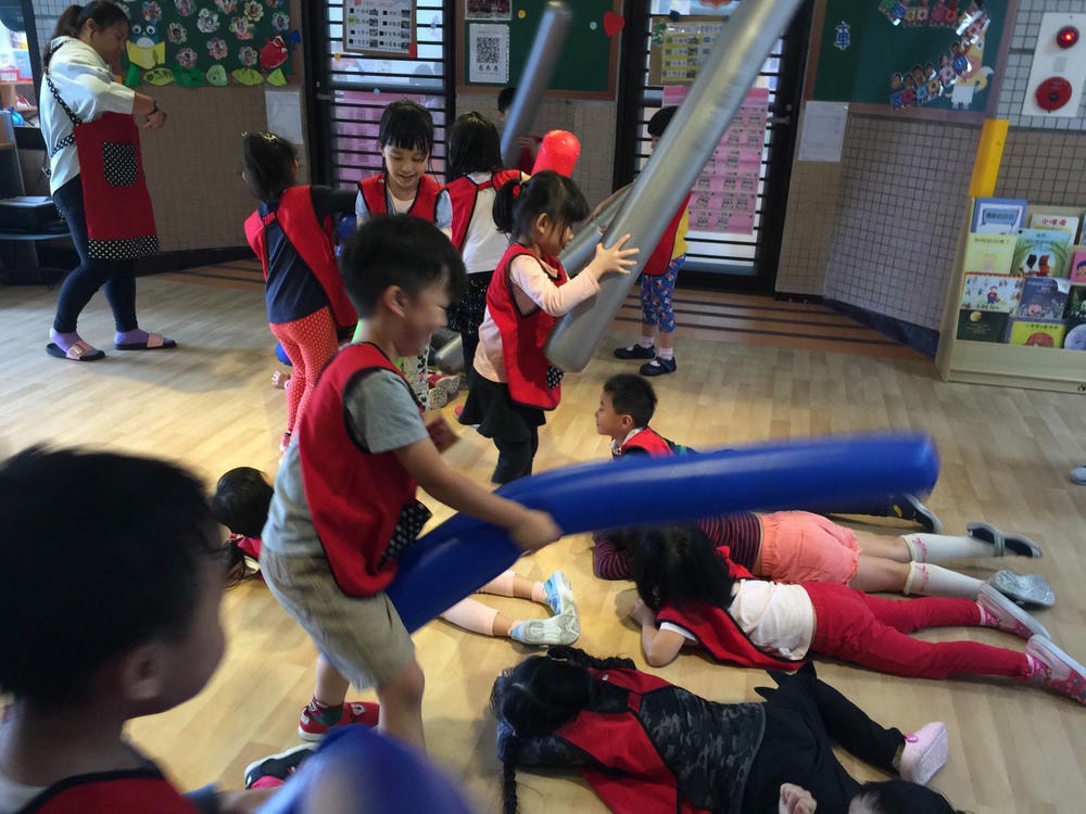 泡棉管真好玩~運用泡棉管可以帶領孩子玩很多遊戲喔。我們扮演長頸鹿和大象,我們還有玩打地鼠.跳跳馬.打蟑螂,老師跟我們玩騎馬打仗以及釣魚遊戲,真好玩。