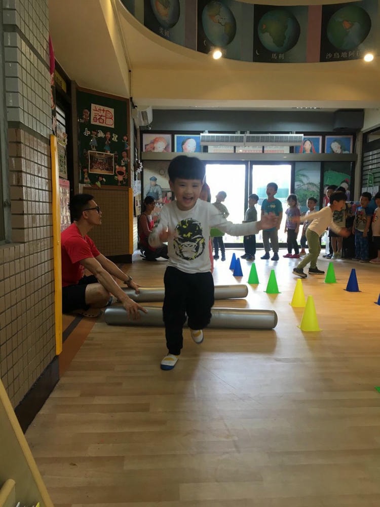 這次遊戲老師設計了有關踢足球的動作給孩子挑戰,做到手部與腳部肌肉和雙眼的協調練習喔!每一樣活動都好好玩喔!