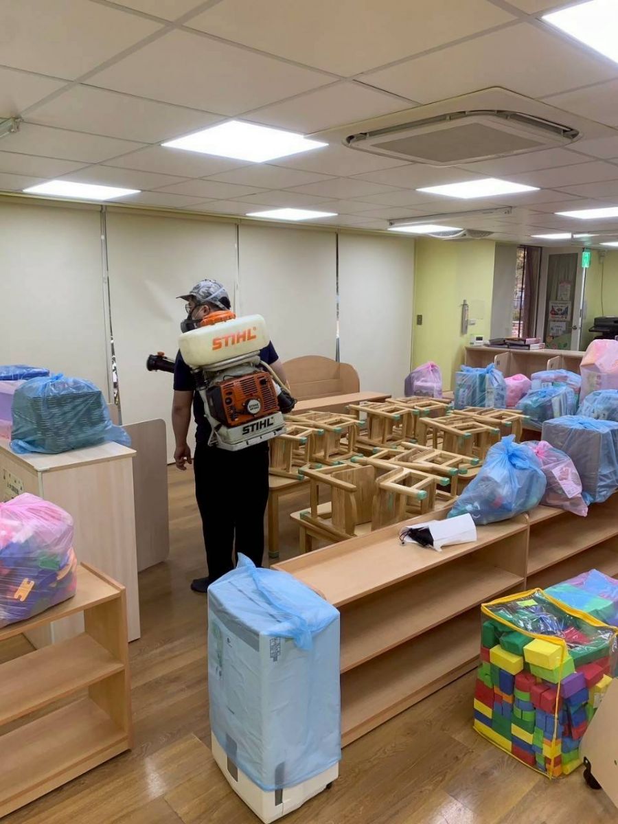 每一年學期初,中心定期會聘請專業的消毒公司,