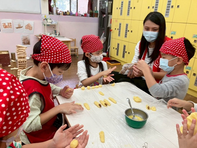 本次「巫婆手指餅乾」活動在志工家長的協助下順利完成,孩子們對餅乾的製作過程充滿好奇與熱情,從稱重、揉麵到塑形,每個步驟都展現出專注與耐心。過程中孩子能夠體驗食材變化的趣味,並在親手操作中增進手部肌肉控制與合作能力。老師在一旁引導幼兒觀察與討論材料特性,使孩子在愉快的烘焙體驗中學習食育概念,並透過實作培養自信與成就感。