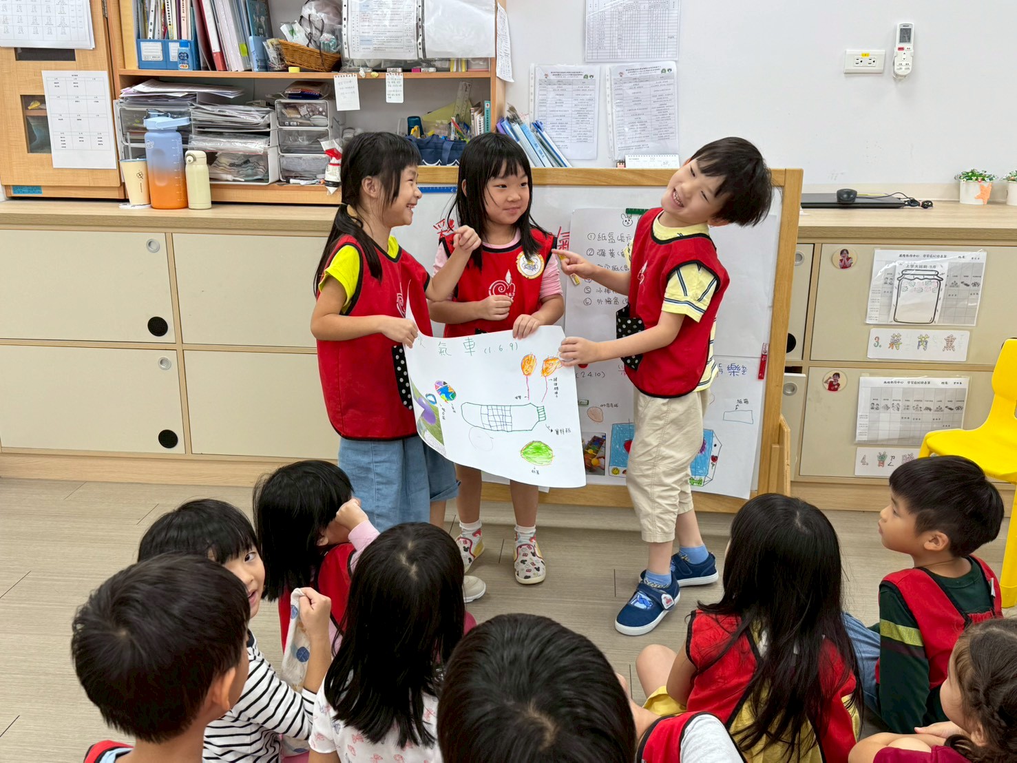 主題學習內容,帶領幼兒從環保、節能、永續生活等概念開展主題課程,並融合STEAM 教育理念,如透過觀察、動手操作、設計等方式,鼓勵幼兒在探究與創造中發展