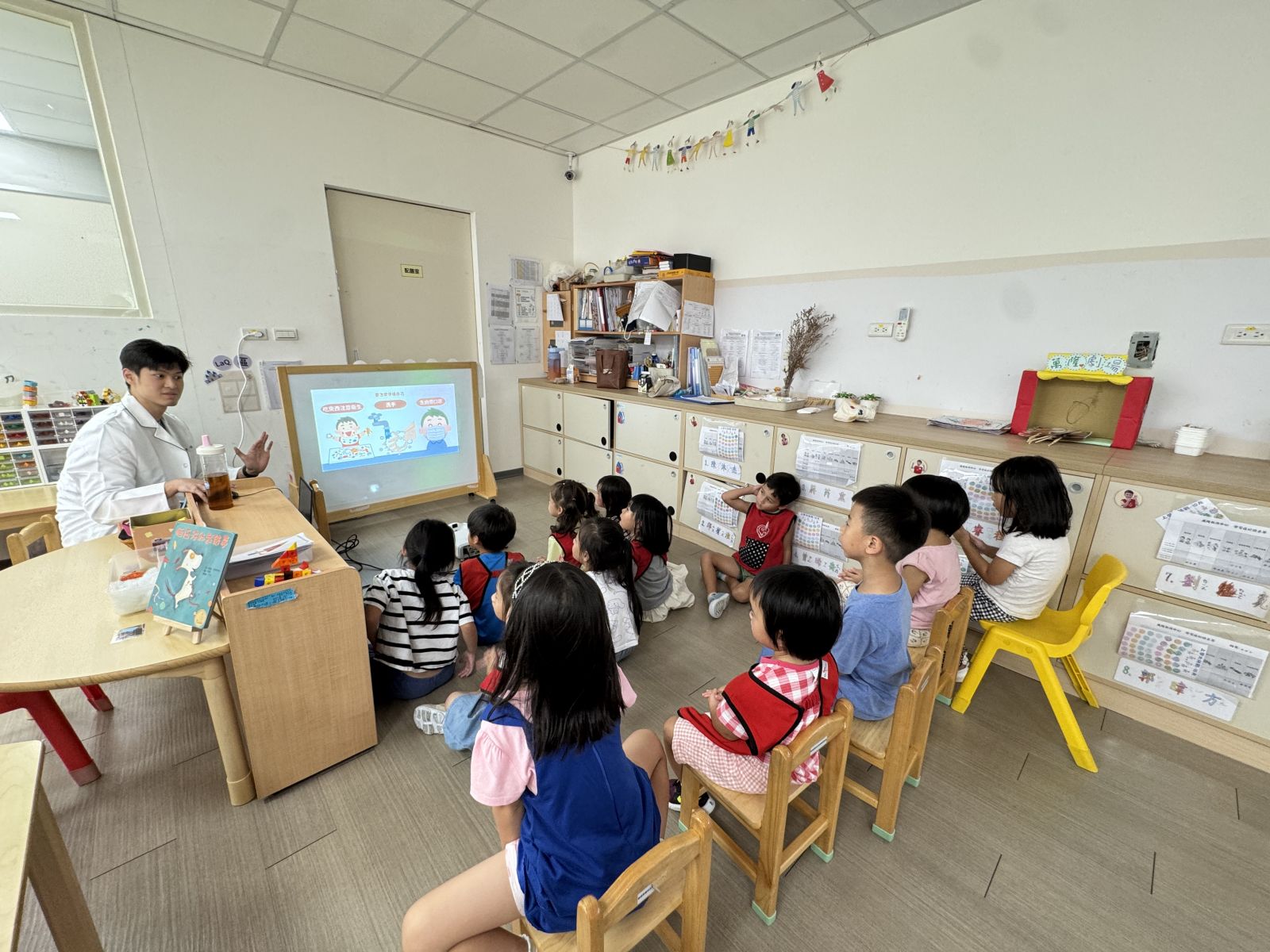 護理師透過繪本及影片的分享,帶孩子認識安全的戲水環境及遇到危險發生時,可以如何保護自己的方式,希望孩子們都能了解安全戲水的重要性!
