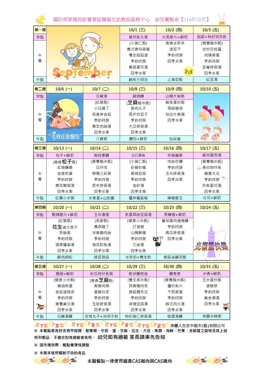 114年10月份餐點表