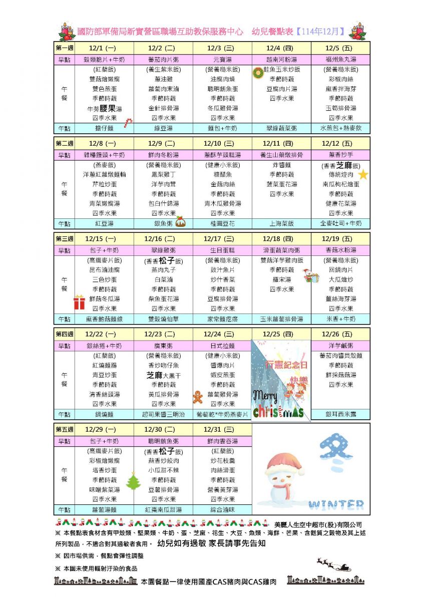 114年12月份餐點表