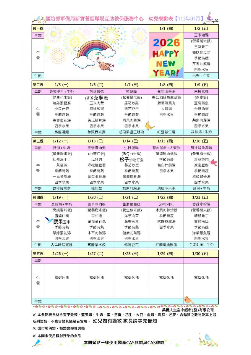 115年01月份餐點表