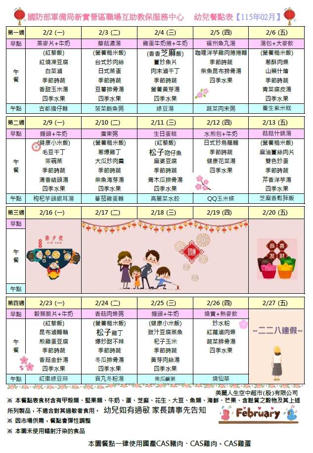 115年02月份餐點表