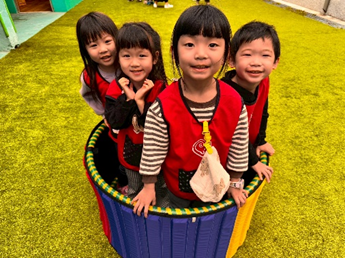 4. 上街買豆子趣 - 將隊伍分為紅隊和綠隊。所有隊員騎腳踏車到對面,將豆子(小布絨)放入籃子後帶回隊伍中。當時間結束時,計算每隊購買的豆子數量,獲得最多豆子的隊伍將獲勝。