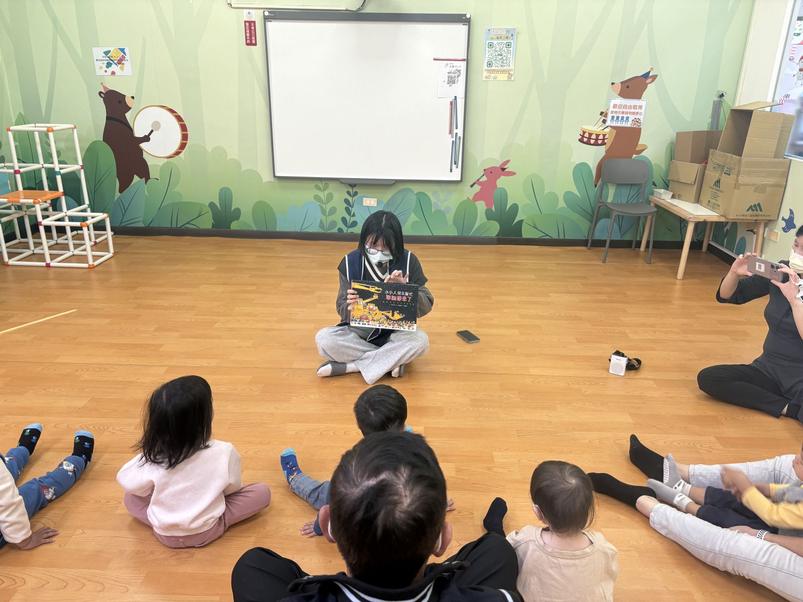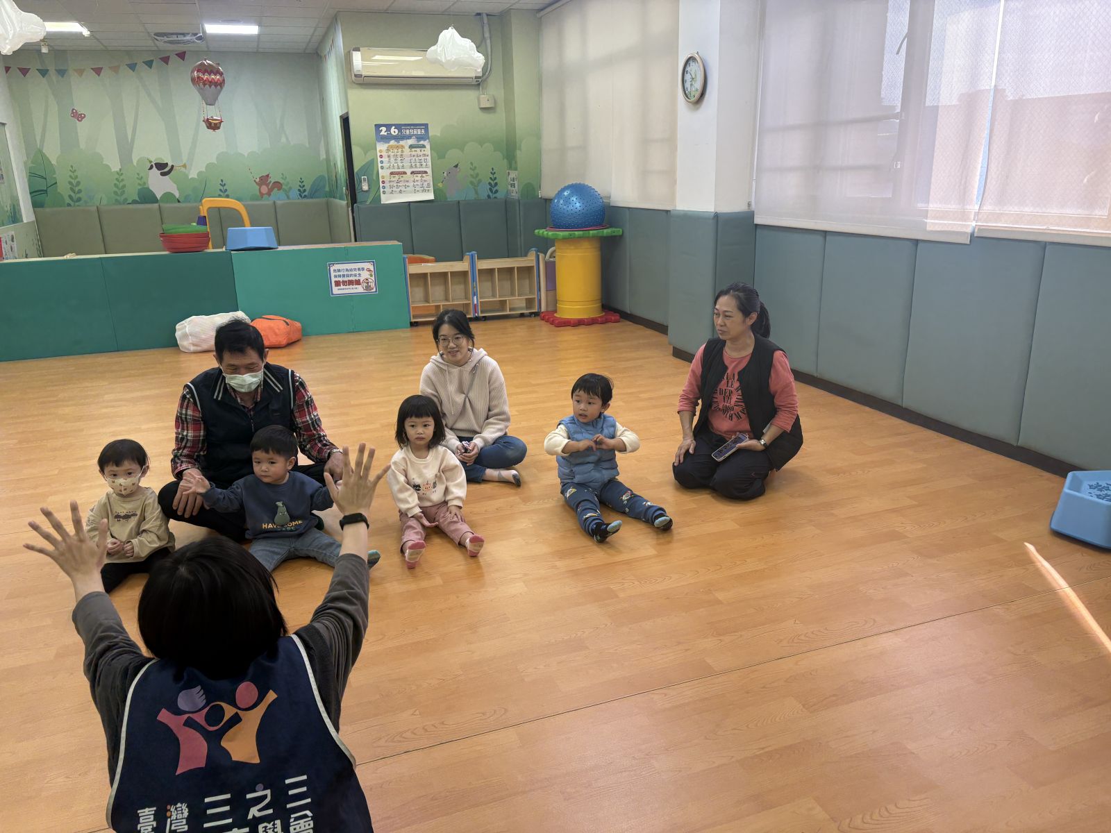 親子先跟著音樂一起動動身體,調整心情準備上課囉,