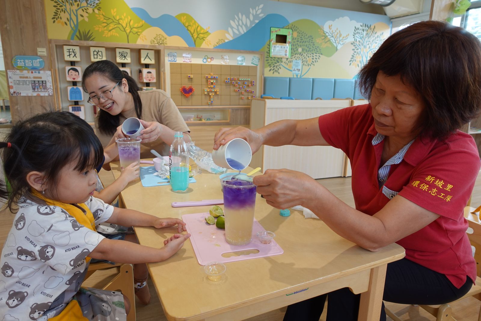 8月份適逢父親節,為了感謝愛我們的家人,老師帶著親子一起製作消暑的飲品「蝶豆花」。首先先進行有趣的「蝶豆花實驗」,觀察倒入檸檬汁或小蘇打水後顏色變化的神奇現象,孩子們驚呼連連。之後親子一起動手製作蝶豆花氣泡飲,從切檸檬、擠汁、加蜂蜜到倒入蝶豆花茶,過程中色彩繽紛、檸檬香味四溢。每位孩子都開心地舉起自己的作品,準備把這杯繽紛的飲品送給最想感謝的家人,甜蜜又充滿節日氛圍!