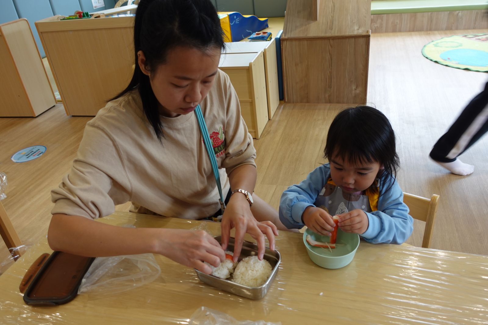 在歡樂的聖誕音樂與律動中,大小朋友跟著老師一起認識聖誕老人,開心進入節慶時光。孩子在家長陪伴下揉捏米飯,捏成可愛的麋鹿與聖誕老人壽司,有的幫聖誕老人的表情弄成笑咪咪的,非常可愛!在笑聲與合作中完成作品,也留下溫馨又甜甜的聖誕親子回憶。