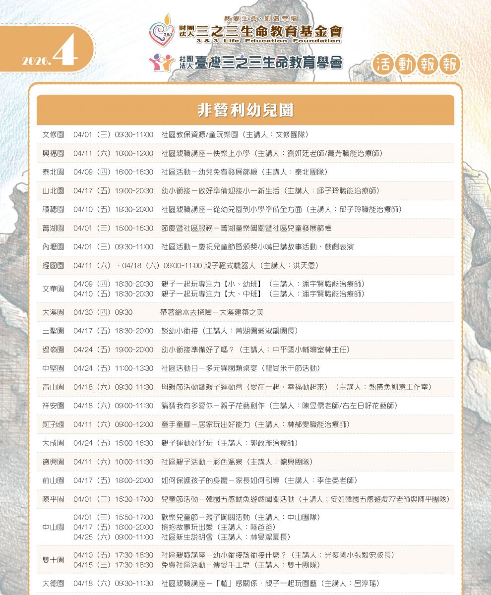 - 新北市文中非營利幼兒園(委託財團法人三之三生命教育基金會)